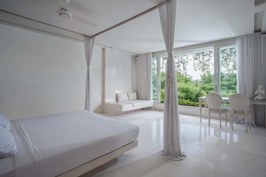 Every villa comes with its own private pool, fully equipped kitchen, flat screen plasma TV in a very spacious living room including Wi-Fi connections. Four of the villas can be joined into two, large super-villas through sliding walls connecting the gardens creating two eight-room villas.