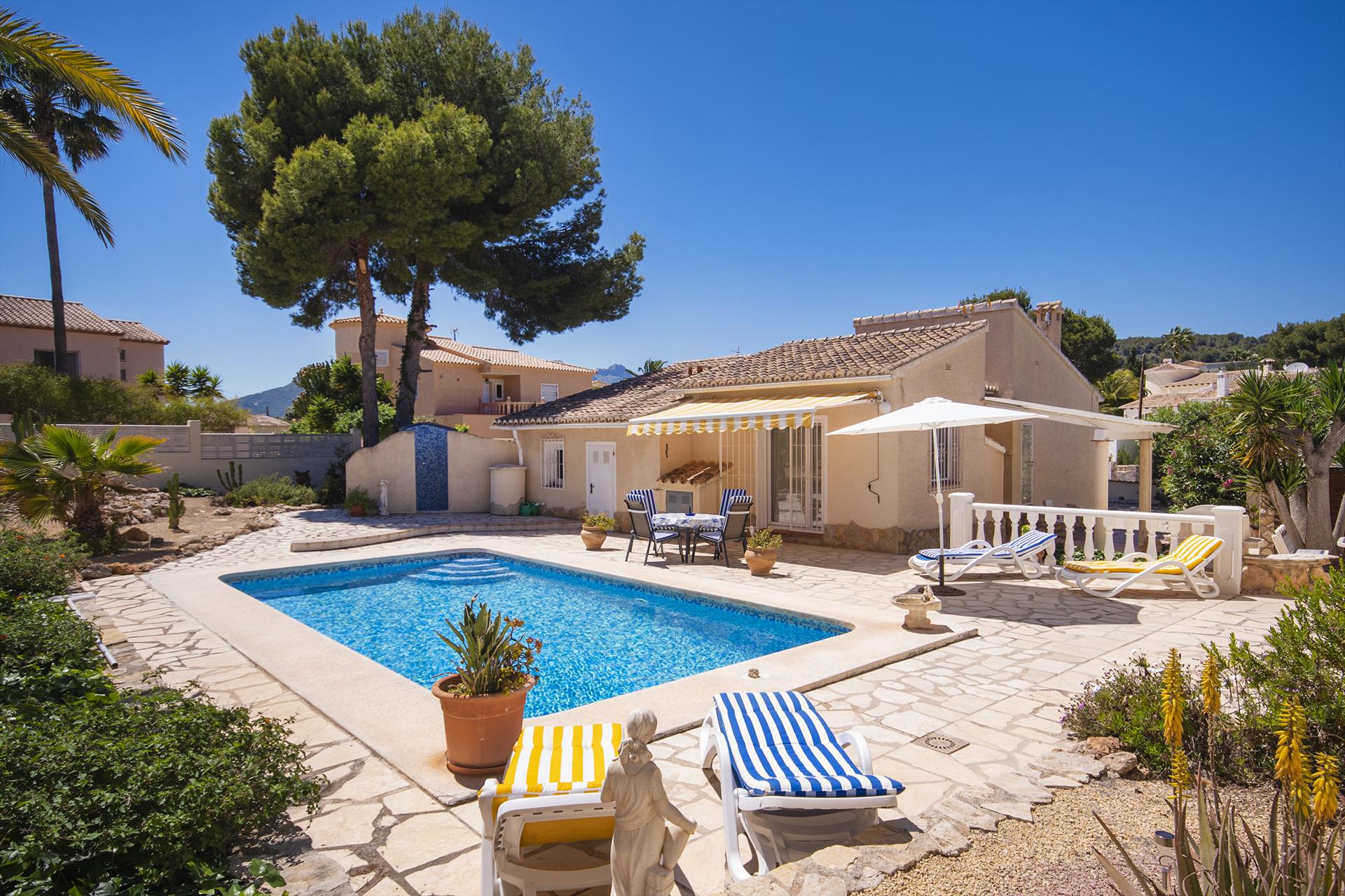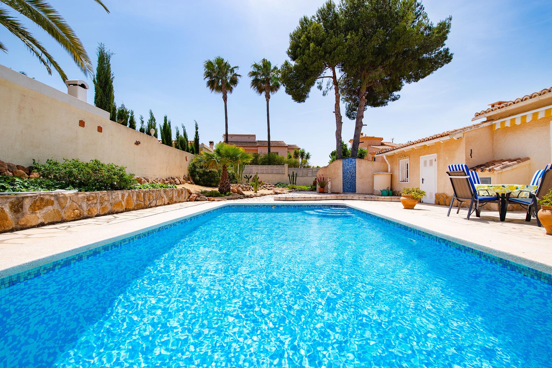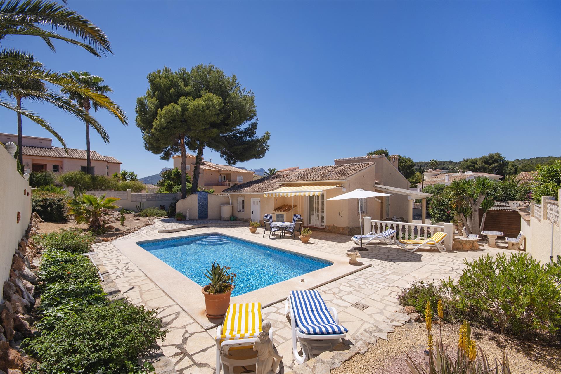 Wonderful and comfortable villa with private pool in Benissa, Costa Blanca, Spain for 4 persons. The house is situated in a residential beach area, 3 km from La Fustera beach and 5 km from Calpe.