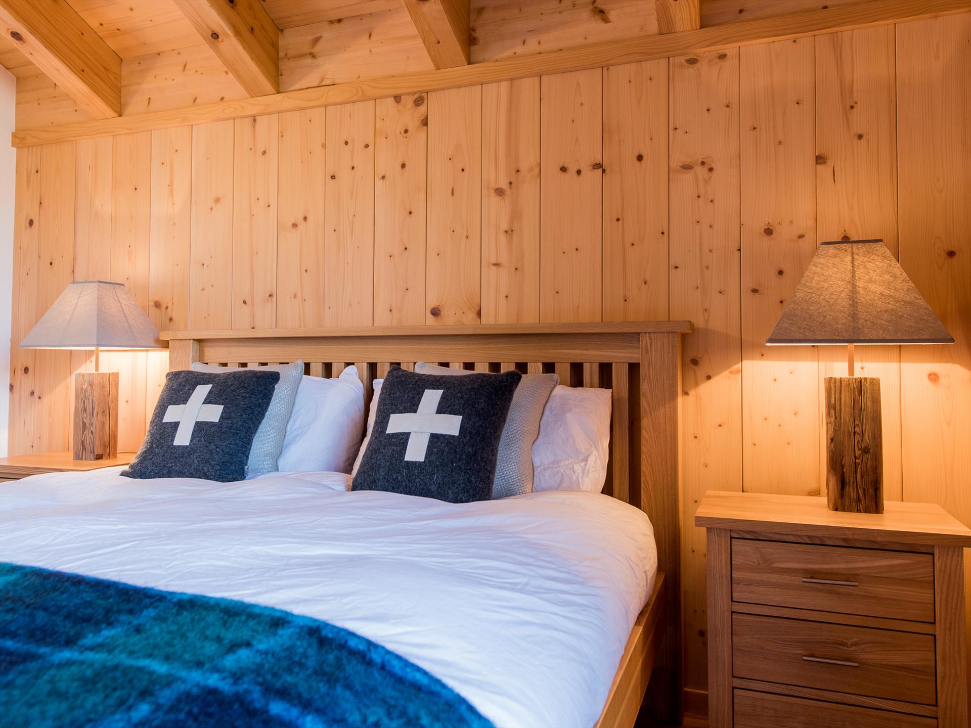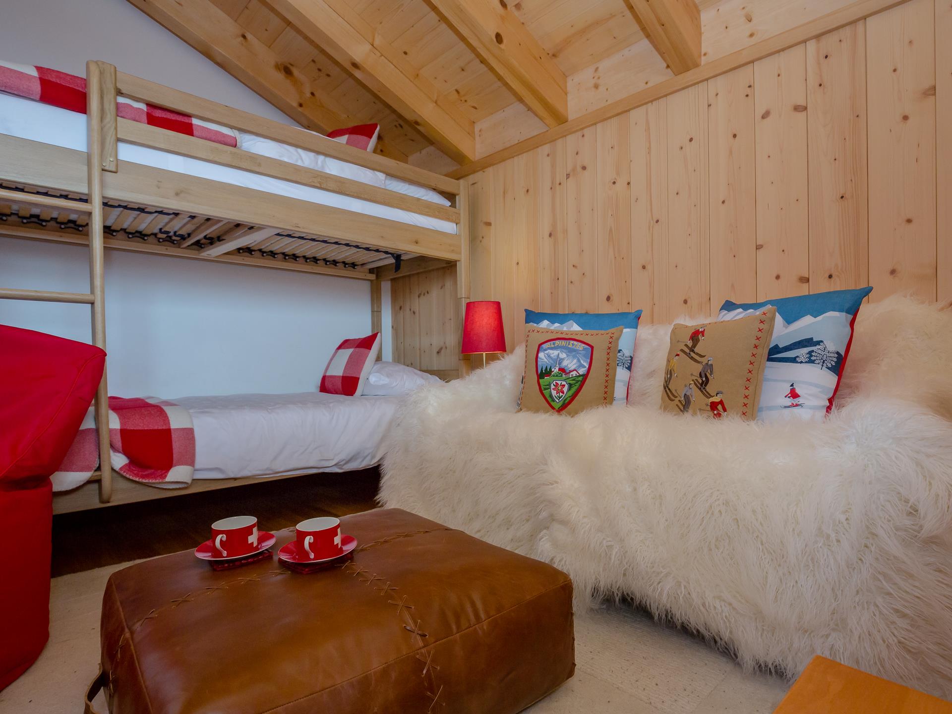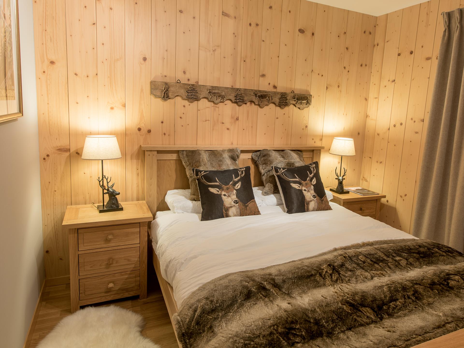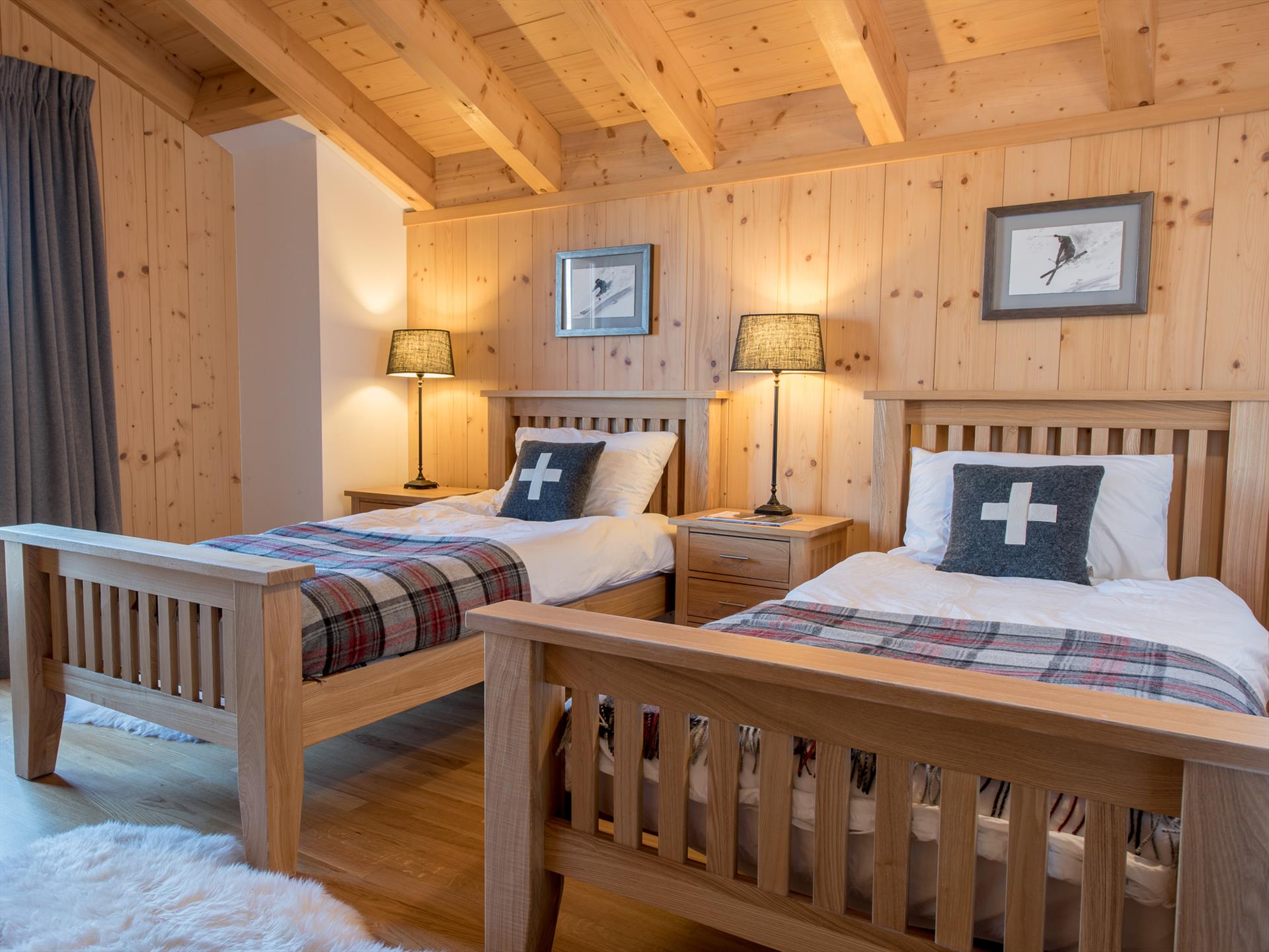 With its five bedrooms and four bathrooms, this chalet is ideal for 8 adults or up to 10 including children. Downstairs are two en-suite double bedrooms, and upstairs there is a further double bedroom, a twin bedroom, and a TV/games room with a high quality bunk bed and a sofa. Of the four bathrooms, two are fitted with a shower and two with a bath and overhead shower.