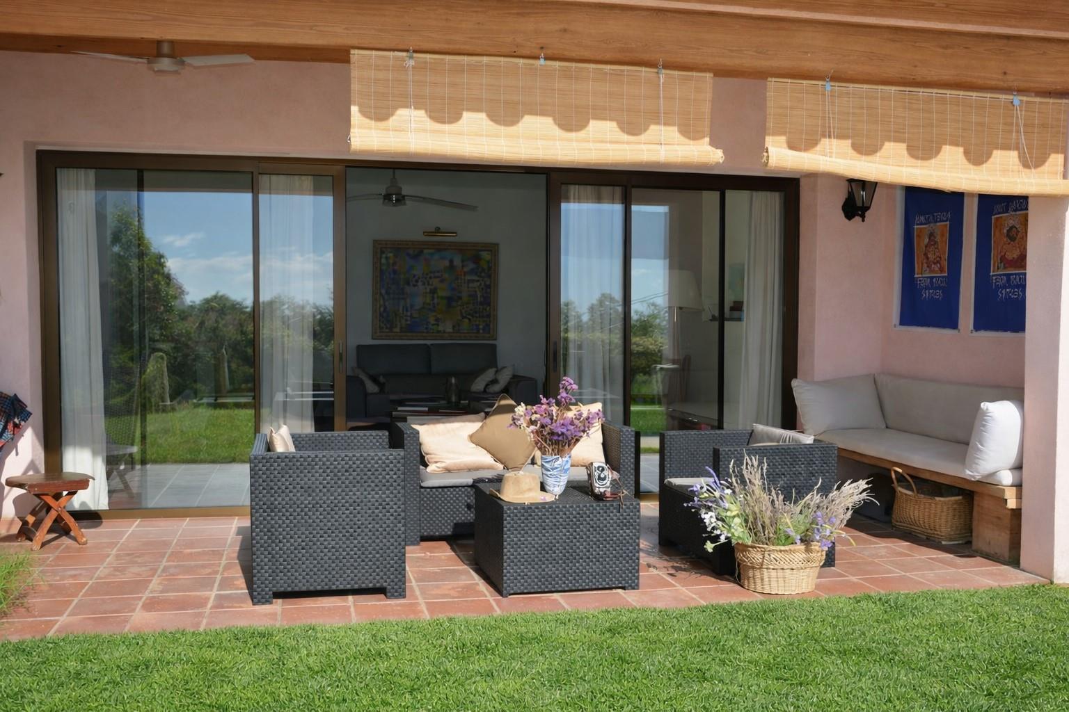 - área de estar al aire libre y área de comedor al aire libre
