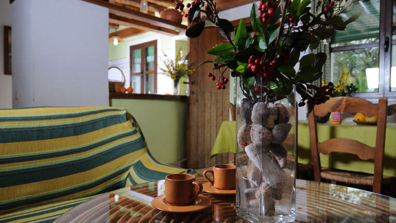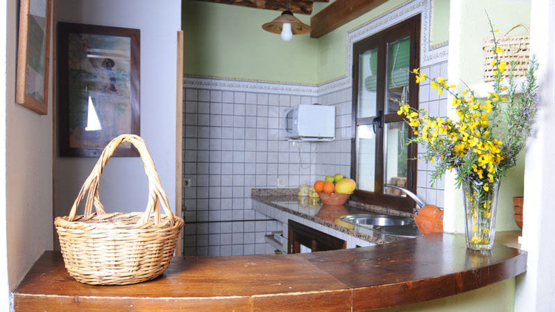 La casa se encuentra en el piso superior del edificio, se accede por una escalera exterior. Está decorada en estilo rústico y típico de la zona. Se sentirá directamente en casa en el salón que es muy acogedor con chimenea, sofá y televisión. La cocina tiene placa de gas de 4 fuegos, microondas, lavadora y los utensilios necesarios. Hay 4 dormitorios (dos de matrimonio y dos dobles) que comparten los dos cuartos de baño. Hay calefacción central.