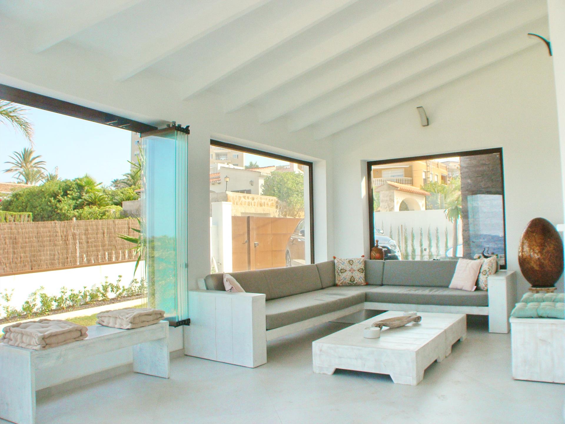 Villa moderna y lujosa con piscina privada en Jávea, Costa Blanca, España, para 8 personas. La villa está situada cerca de restaurantes, bares, tiendas y supermercados, y se encuentra a solo 25 metros de la Playa Arenal.
