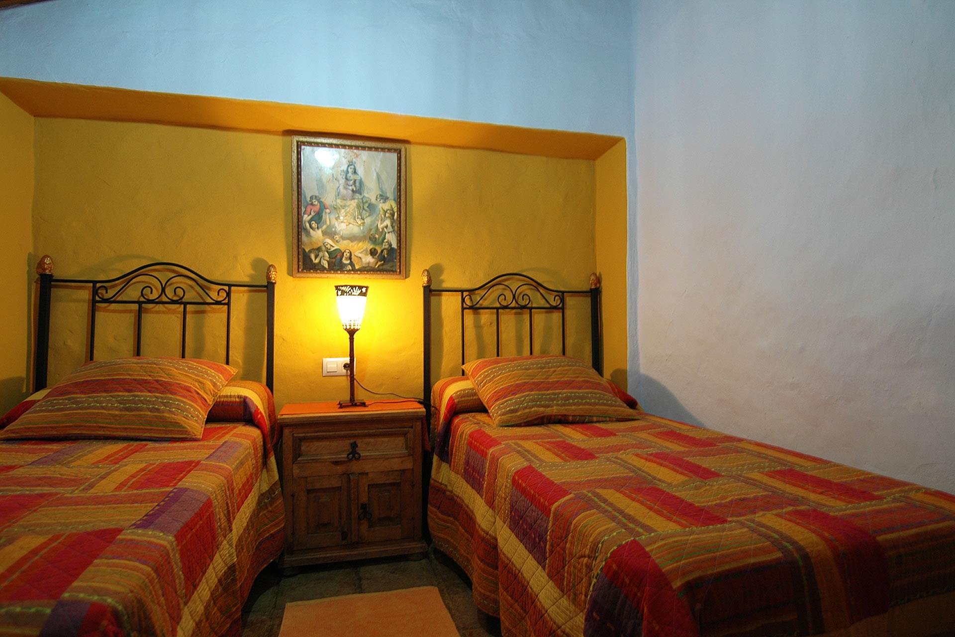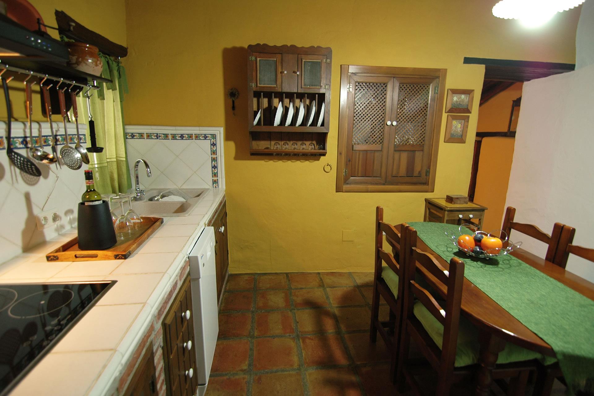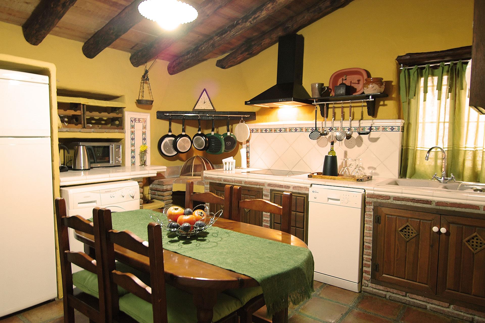 Es un cortijo en todos los sentidos de la palabra: en el interior encontramos techos tradicionales con vigas de madera, suelos con lozas antiguas y paredes en ocre que en su conjunto crean un ambiente cálido y típico andaluz. El salón dispone de 4 sillones, chimenea, televisión por satélite y DVD. La cocina está equipada con frigorífico/congelador, vitrocerámica, microondas, lavavajillas y lavadora. Hay 2 dormitorios (uno con cama de matrimonio, otro con 2 camas individuales) y un cuarto de baño con ducha, lavabo y wc.