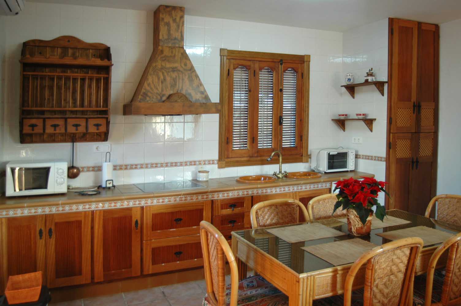 El salón es muy cómodo y realizado en un estilo rústico y dispone de chimenea, mesa comedor, sofá, 2 butacas, mesita y televisión por satélite. La cocina, en plan-abierto, esta equipada con vitrocerámica, horno, microondas, lavavajillas y frigorífico. La lavadora se encuentra en un cuarto junto a la terraza.