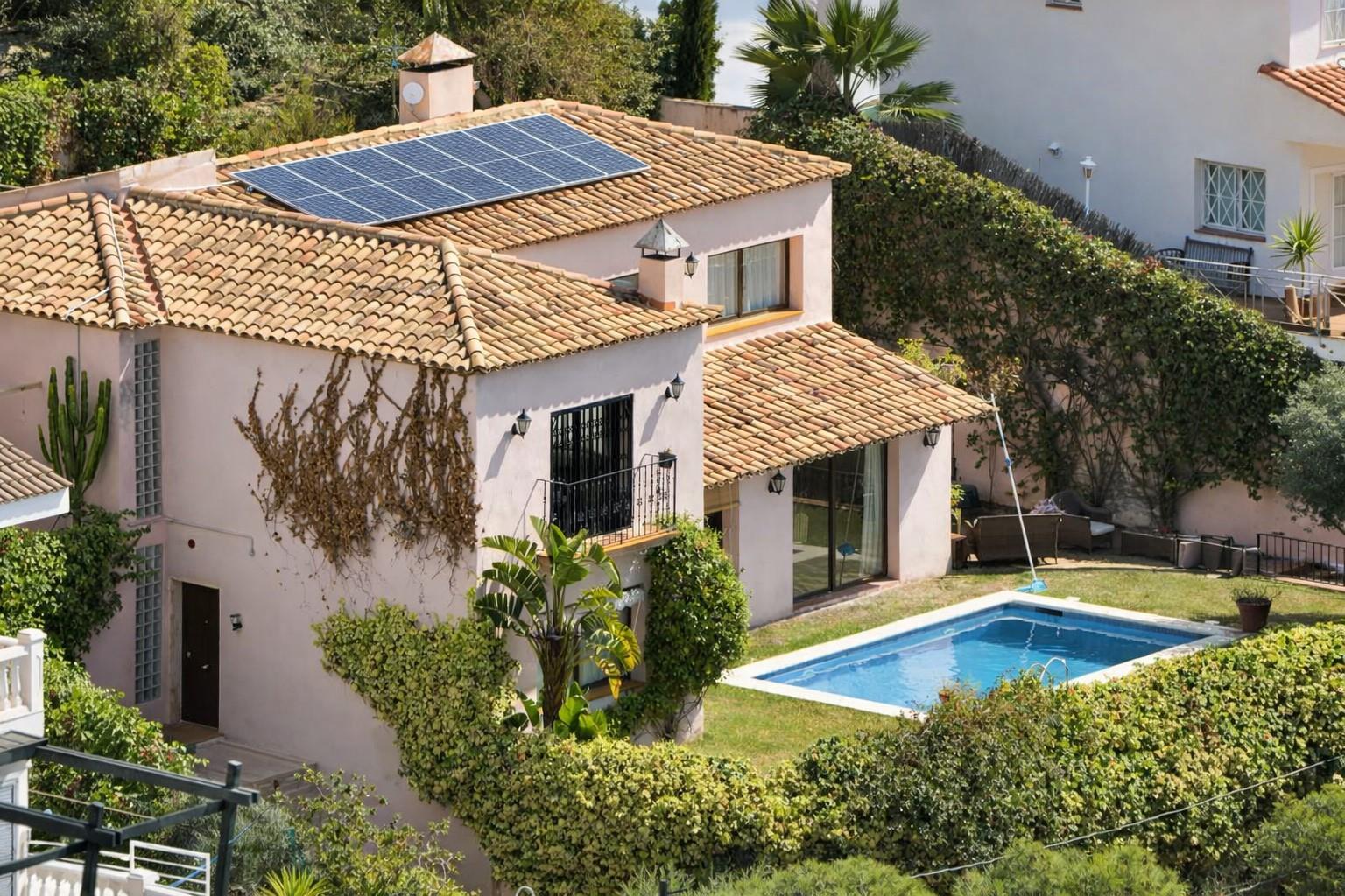 Villa de lujo en Sitges, Costa Dorada, España, con piscina privada para 8 personas. La villa se encuentra en una zona urbana de playa, montañosa y arbolada, a 1 km de la playa.
