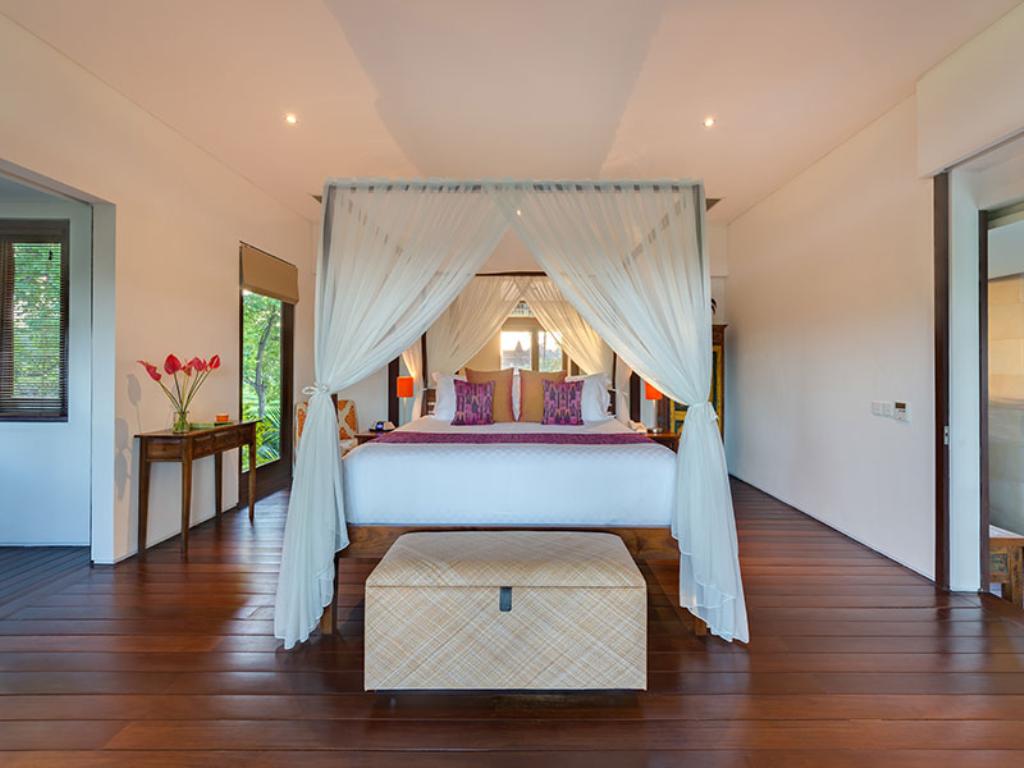 Amplia y lujosa villa con piscina privada en Canggu, Bali, Indonesia, para 8 personas. La villa se encuentra en una zona rural cercana a la playa y está a 1 km de la playa de Batu Bolong. La lujosa villa cuenta con 4 dormitorios, 4 baños y 1 aseo, distribuidos en 2 niveles. El alojamiento ofrece mucha privacidad, un maravilloso jardín con césped y árboles, y una gran piscina hermosa. Su comodidad y la proximidad a la playa, áreas comerciales, actividades deportivas y vida nocturna hacen de esta una villa lujosa ideal para pasar sus vacaciones en Indonesia con familia o amigos.