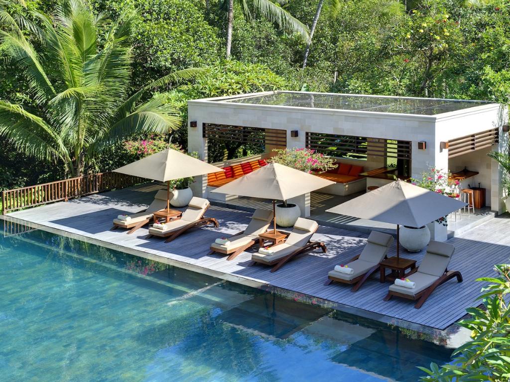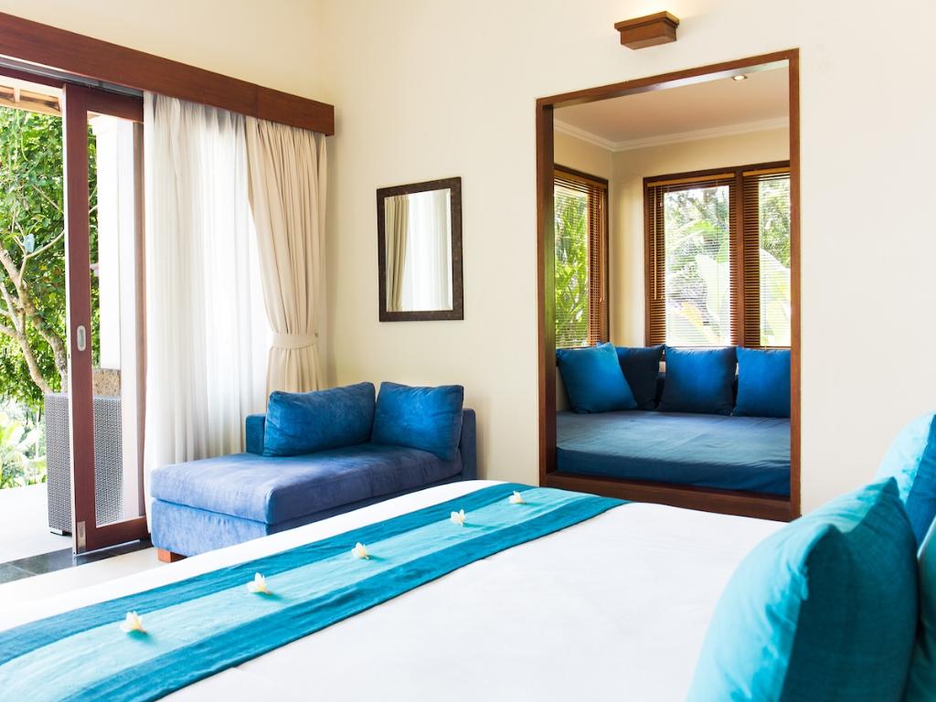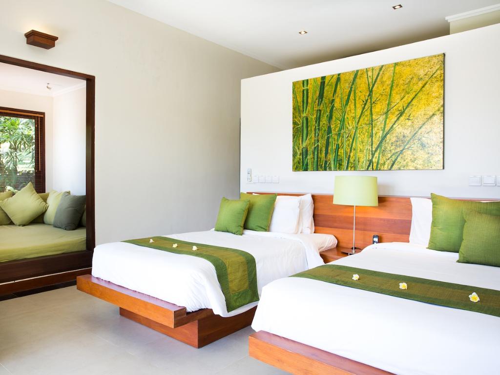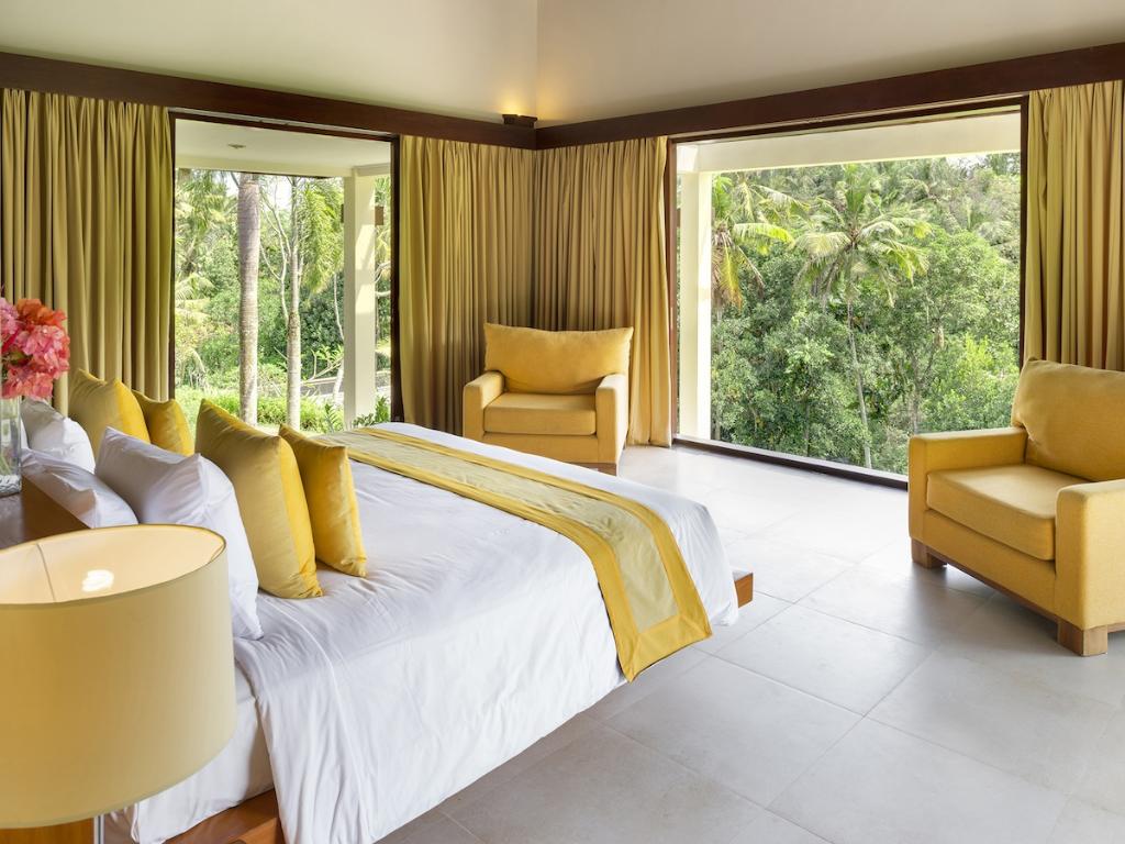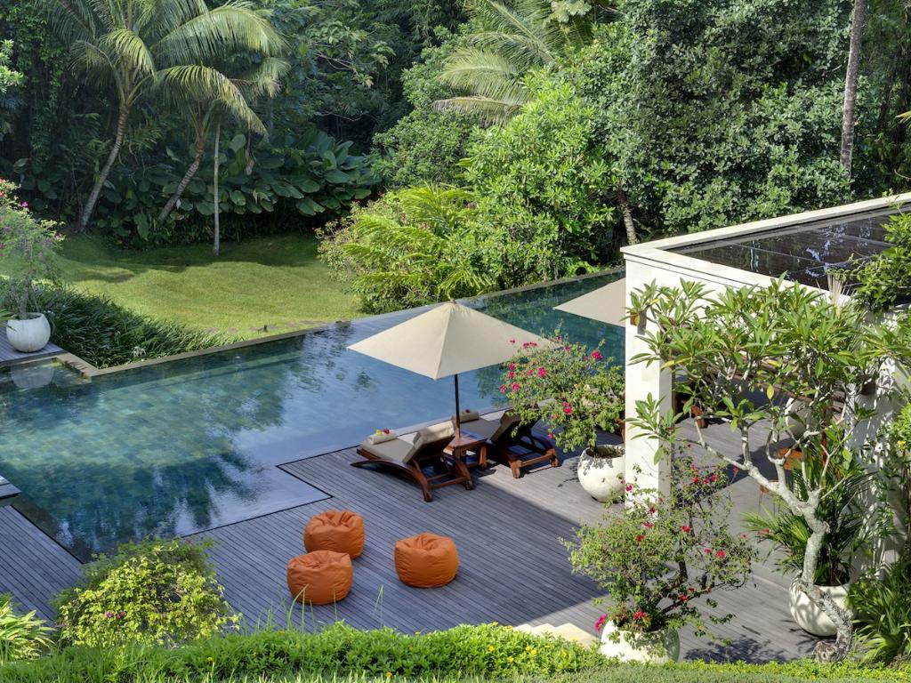 Villa de lujo grande y con piscina privada en Tabanan, Bali, Indonesia para 10 personas. La villa está situada en una zona rural. La villa tiene 5 dormitorios, 5 cuartos de baño y 1 aseo para invitados. El alojamiento ofrece mucha privacidad, un jardín maravilloso con césped y árboles, una piscina maravillosa grande y unas bonitas vistas al valle y a la montaña.