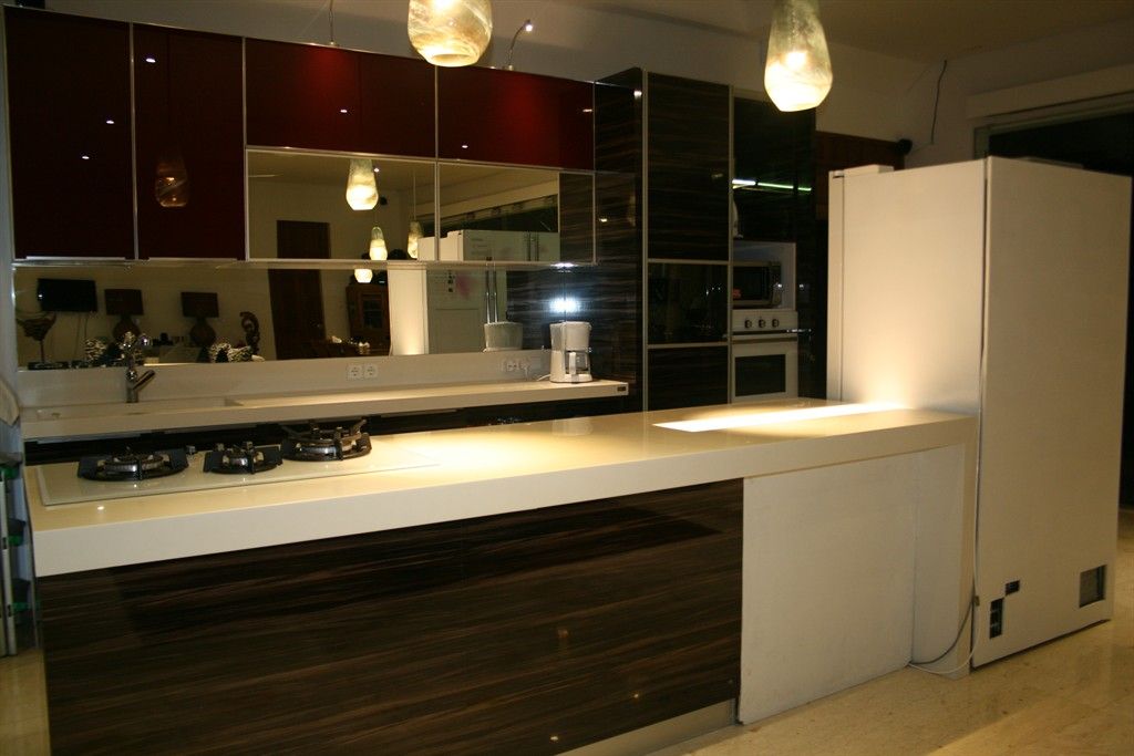 • cozinha com fogão à gas, forno elétrico, micro-ondas, frigorífico, refrigerador, máquina de fazer gelo, cafeteira, batedora, tostadeira, juicer e dispensador de água