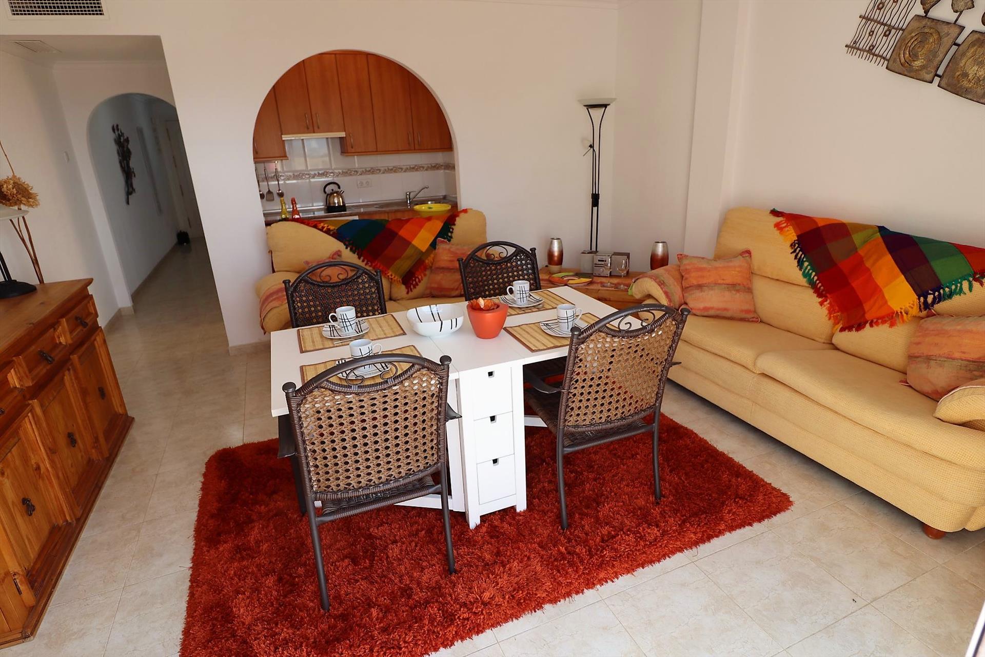 Agradável e alegre apartamento com piscina comunitária em San Juan de los Terreros, Andaluzia, Espanha, para 4 pessoas. O apartamento está situado em um resort à beira-mar, em uma área residencial e montanhosa, próximo a restaurantes e bares, lojas e supermercados, e a 1 km da praia.