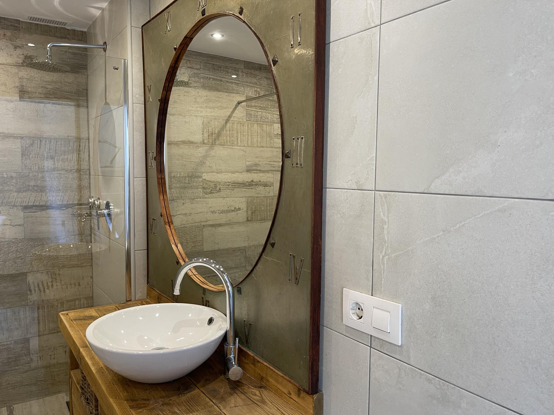 • quarto de banho en suite com lavatório duplo e chuveiro