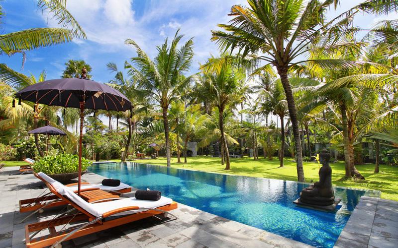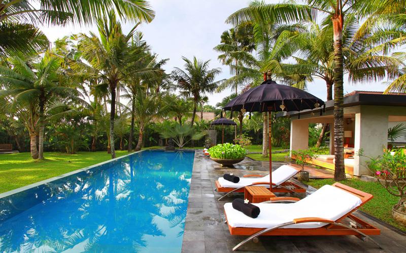 Villa di lusso grande e romantica a Canggu, Bali, in Indonesia con piscina privata per 8 persone. La villa si trova in una zona balneare e residenziale, non lontana da ristoranti e bar, da negozi, da supermercati e da un campo da tennis e a 2 km dalla spiaggia di Pantai Berawa.