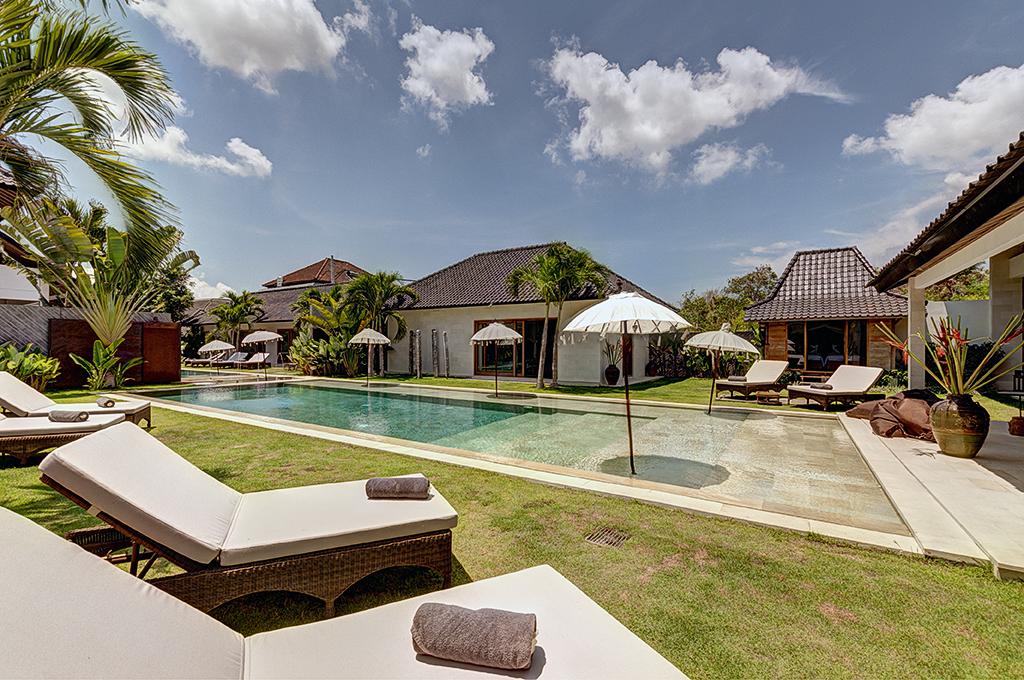 La villa dispone di 6 camere da letto, 4 bagni e 1 bagno per gli ospiti. L'alloggio offre molta privacy, un meraviglioso giardino con prato, ghiaia e alberi e una grande, splendida piscina. Il suo comfort e la vicinanza alla spiaggia, ai luoghi per fare shopping, alle attività sportive, alle strutture di intrattenimento e alla vita notturna fanno di questa villa un luogo ideale per trascorrere le vostre vacanze in Indonesia con familiari o amici.