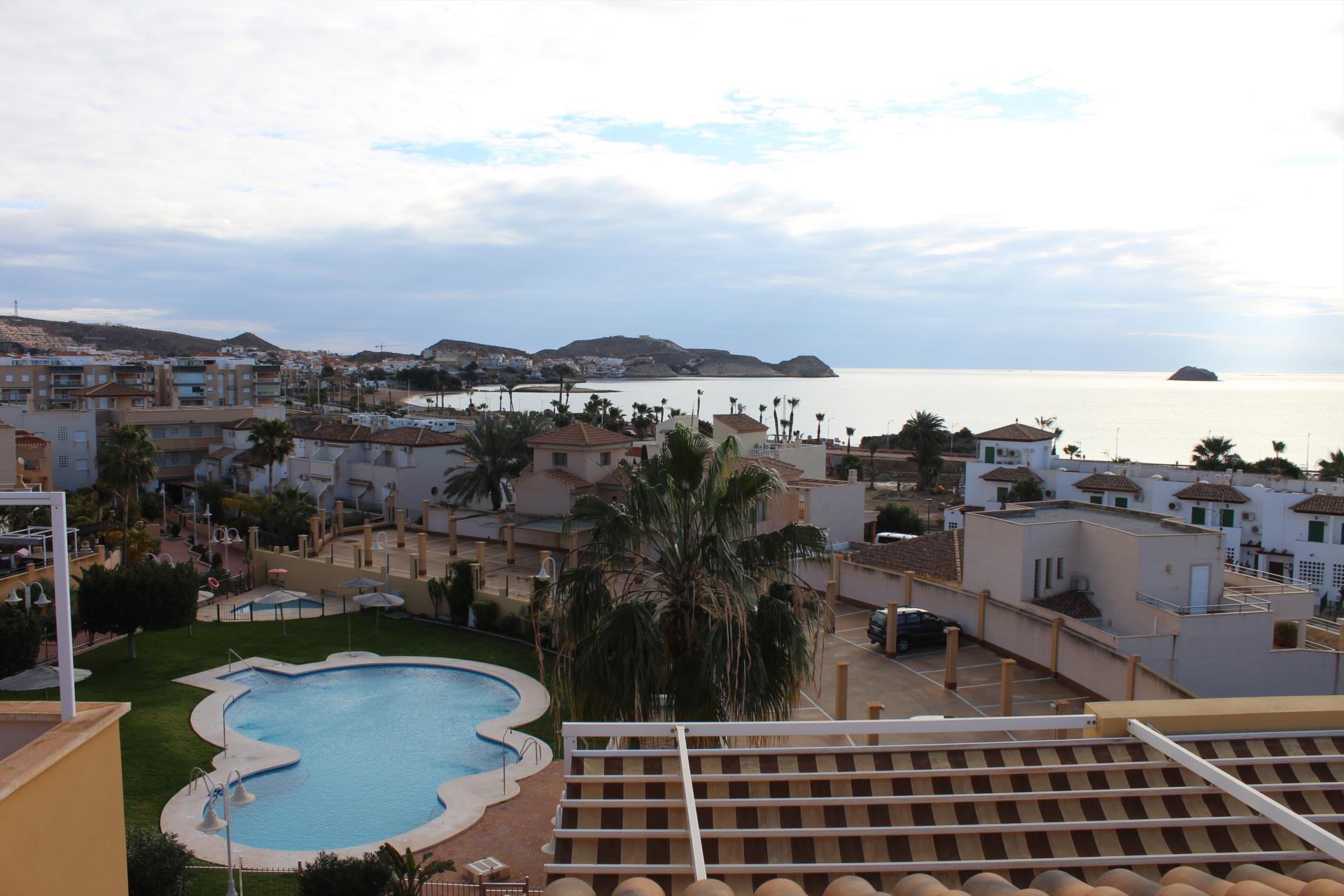 Incantevole e vivace appartamento con piscina comune a San Juan de los Terreros, Andalusia, Spagna, per 6 persone. L'appartamento è situato in un complesso balneare, in una zona residenziale e montuosa vicino alla spiaggia, a pochi passi da ristoranti e bar, negozi e supermercati, e a 100 metri dalla spiaggia.