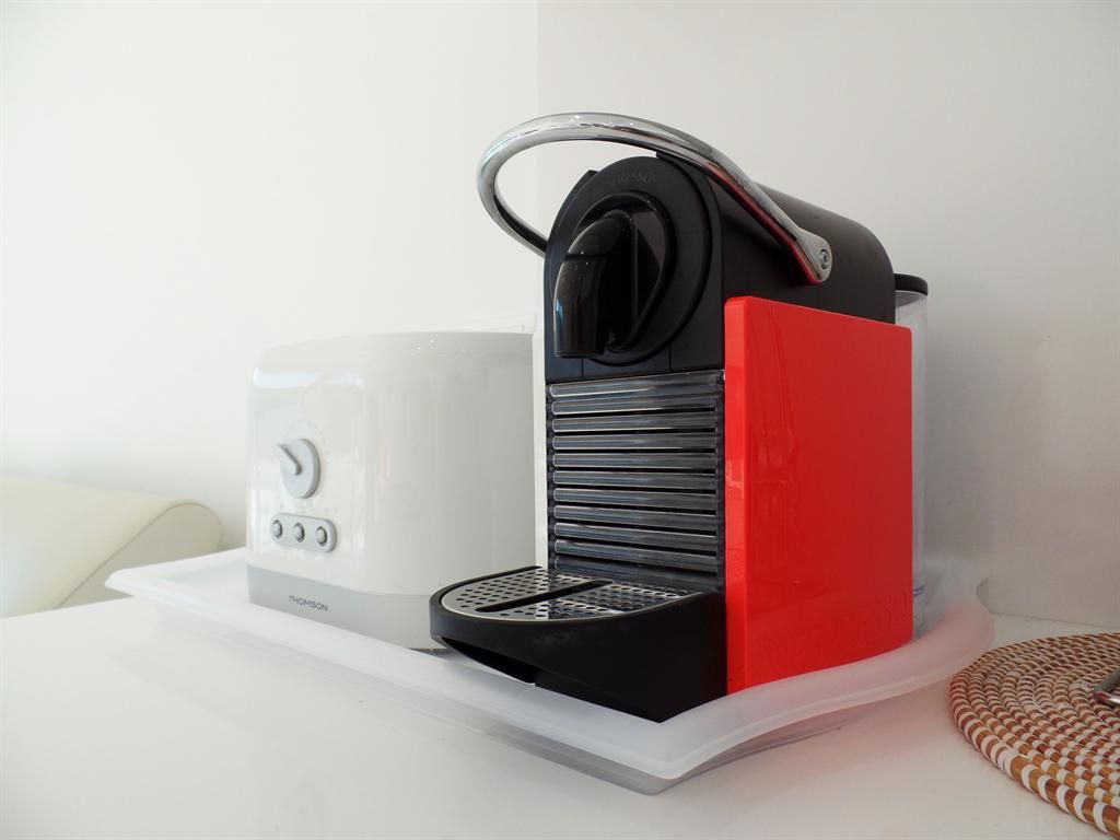 - cucina americana con piano cottura a induzione, forno elettrico, microonde, lavastoviglie, frigo-congelatore, macchina per caffé, bollitore d’acqua, tostapane e distributore di acqua (con acqua calda e fredda)