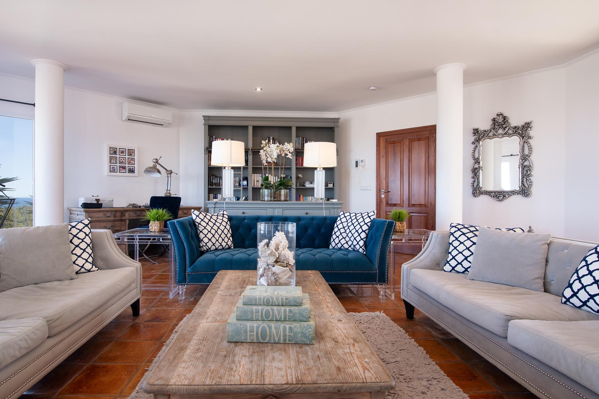 Luksusowa willa dysponuje 6 sypialniami oraz 6 łazienkami, rozmieszczonymi na 4 poziomach. Obiekt oferuje dużą prywatność, piękny trawnik z ogrodem pełnym drzew, urokliwy basen oraz wspaniałe widoki na zatokę, morze, góry, miasto oraz port, jak również malownicze widoki na plażę. Jej komfort oraz bliskość do plaży, aktywności sportowych, obiektów rozrywkowych, miejsc do wyjścia, atrakcji turystycznych i kultury czynią tę willę idealnym miejscem na spędzenie wakacji w Hiszpanii z rodziną lub przyjaciółmi, a nawet z pupilem.