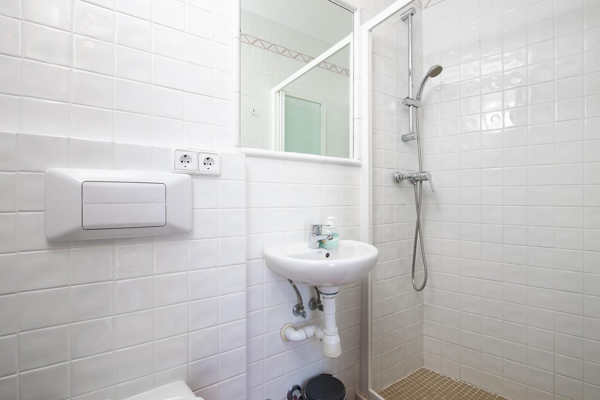- łazienka z umywalką, prysznicem, toaletą i suszarką do włosów
