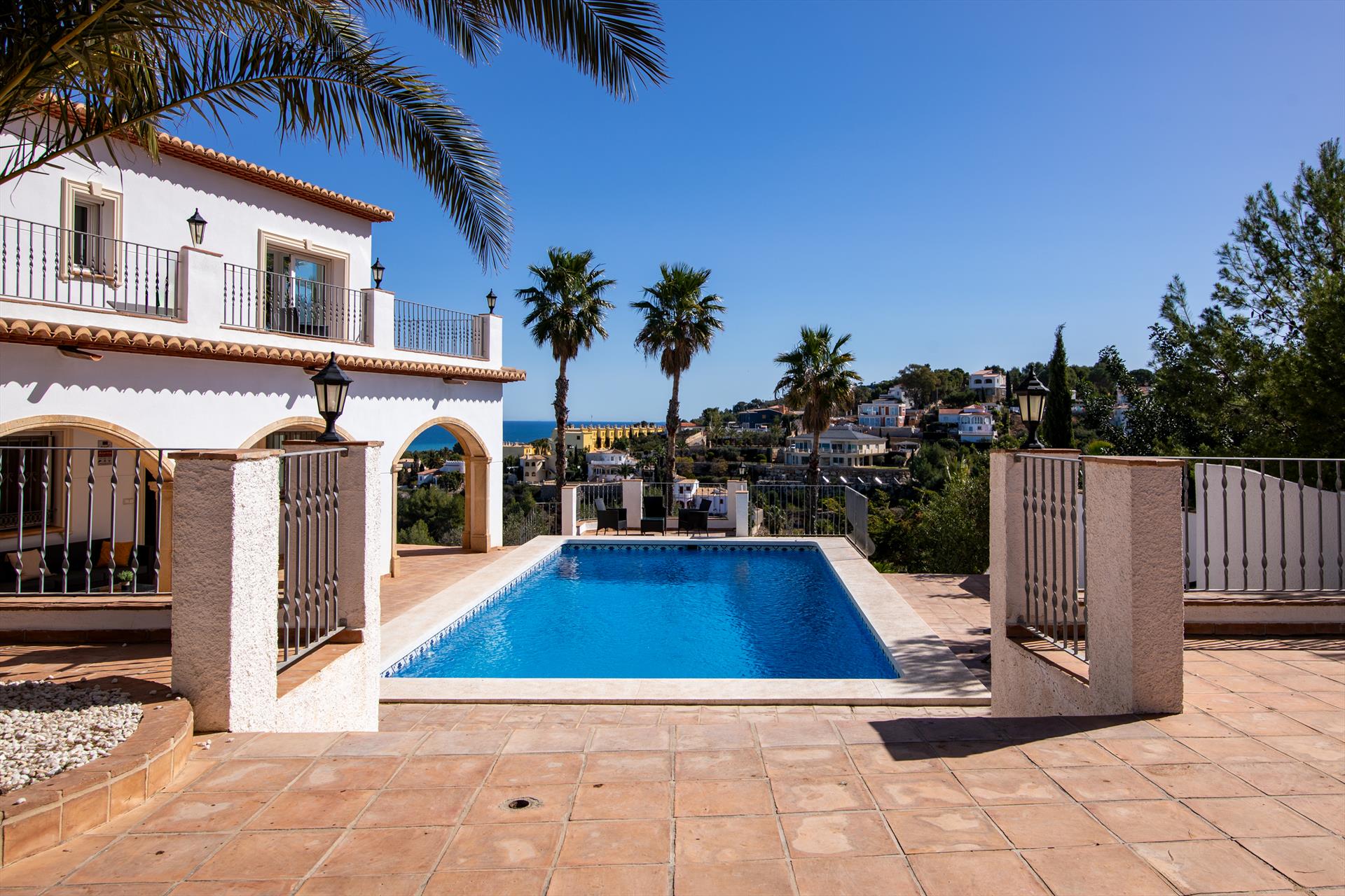 Duża i luksusowa willa w Denii, Costa Blanca, Hiszpania, z prywatnym basenem dla 12 osób. Willa zlokalizowana jest w miejskiej i górzystej okolicy nadmorskiej, 3 km od plaży Marineta Cassiana oraz 3 km od centrum miasta Denia.