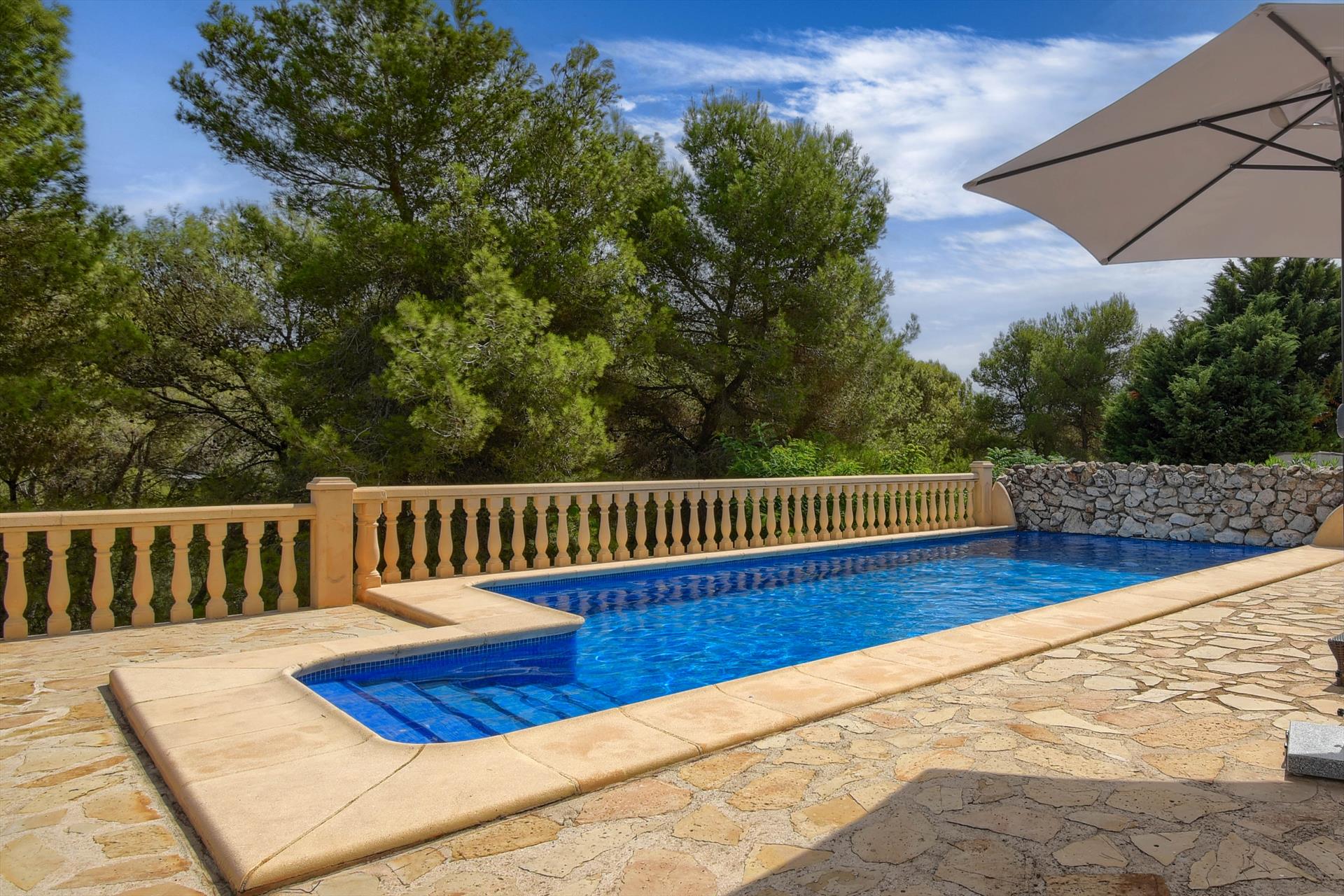 Willa posiada 5 sypialni, 4 łazienki i 1 toaletę dla gości, rozłożone na główne zakwaterowanie oraz oddzielną jednostkę. Oferuje prywatność, wspaniały ogród z trawnikiem, żwirem i drzewami oraz cudowny basen. Komfort i bliskość plaży, miejsc do zakupów, aktywności sportowych, miejsc do rozrywki, zabytków i kultury sprawiają, że jest to doskonała willa na wakacje w Hiszpanii z rodziną lub przyjaciółmi, a nawet z pupilami.