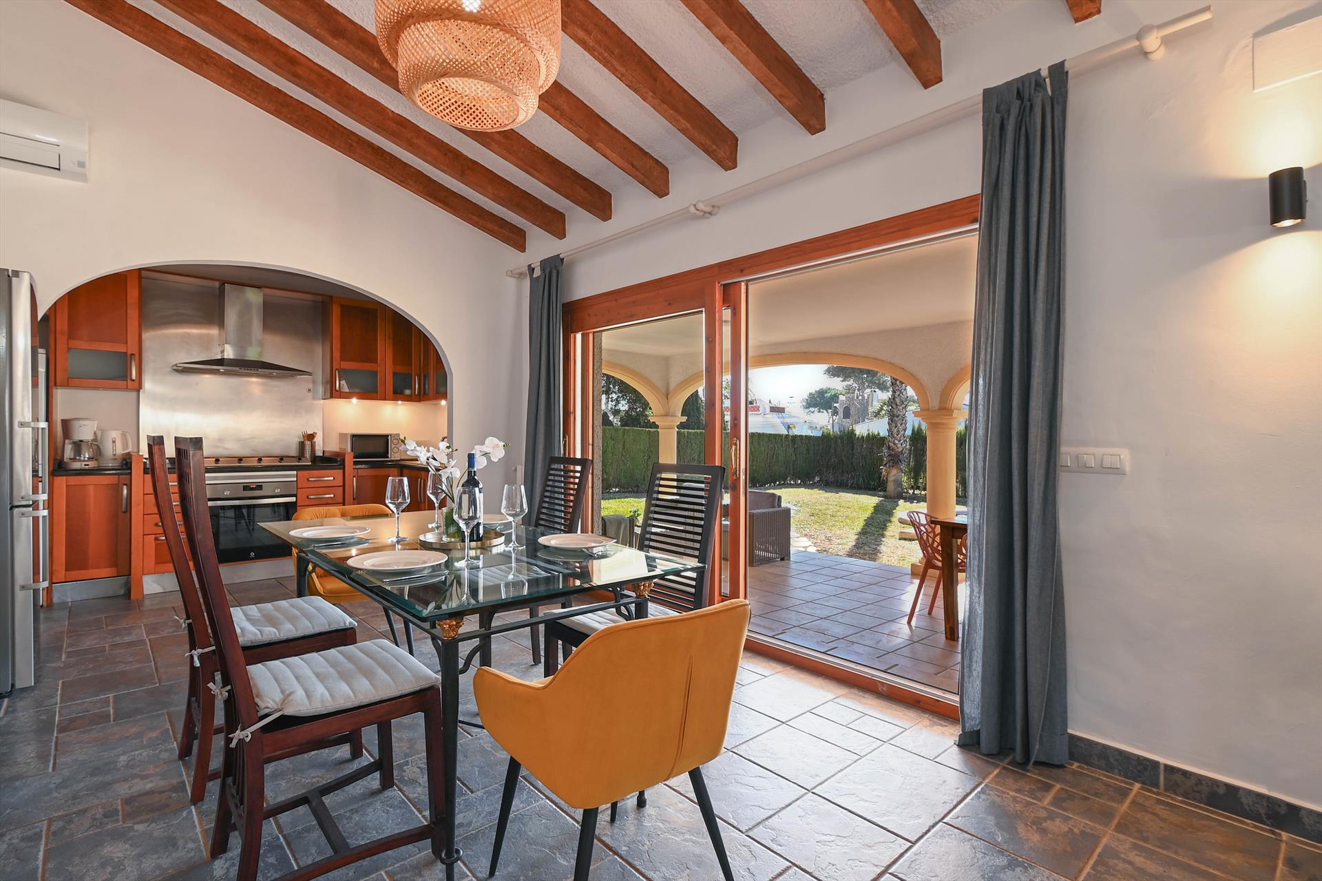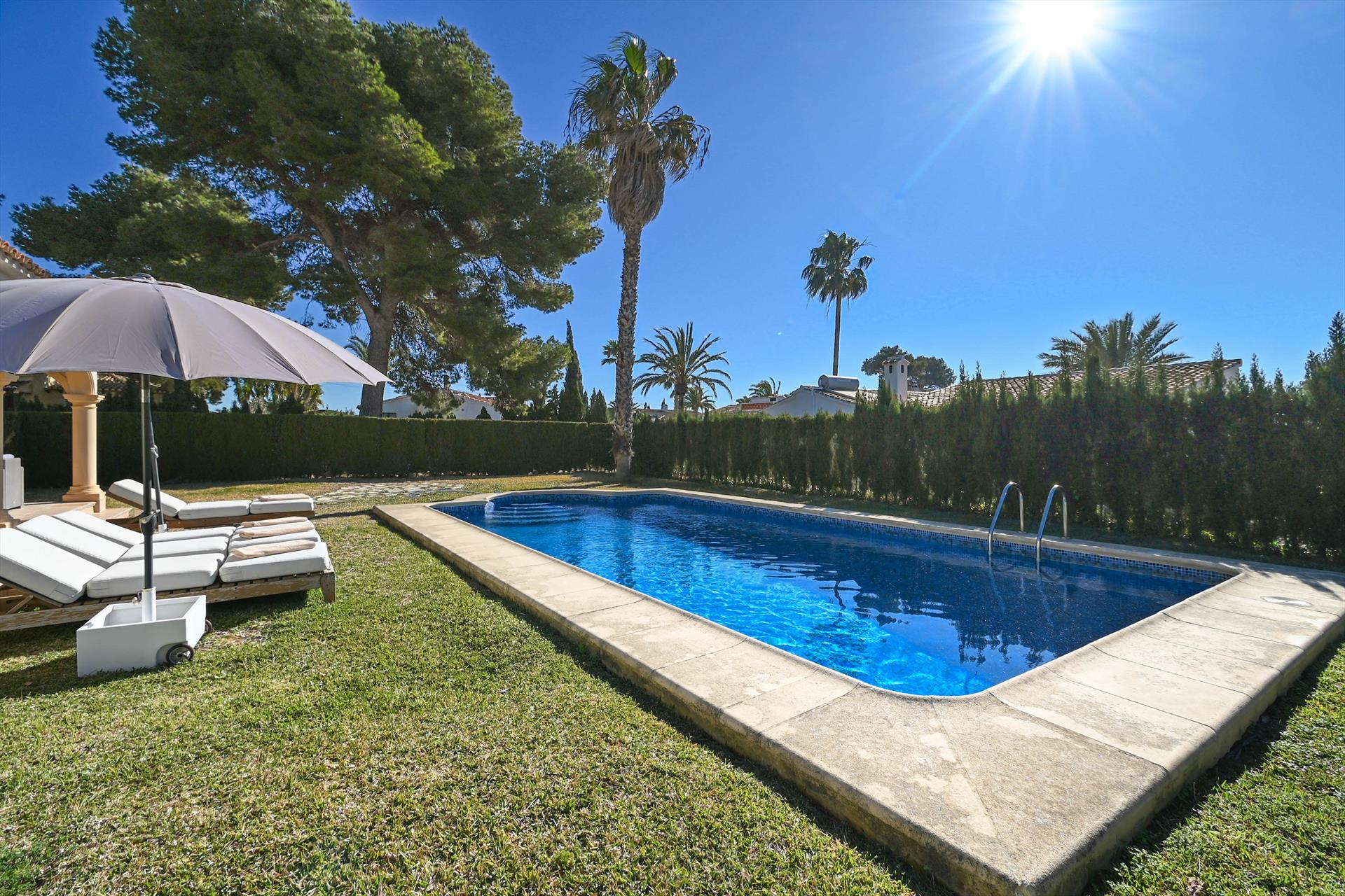 Dom posiada 2 sypialnie i 1 łazienkę. Oferuje prywatność, wspaniały ogród z trawnikiem, żwirem i drzewami oraz piękny basen. Jego wygoda oraz bliskość plaży, miejsc do zakupów, aktywności sportowych, miejsc do zabawy, atrakcji i kultury czynią tę willę idealnym miejscem na spędzenie wakacji w Hiszpanii z rodziną lub przyjaciółmi, a nawet z pupilem.