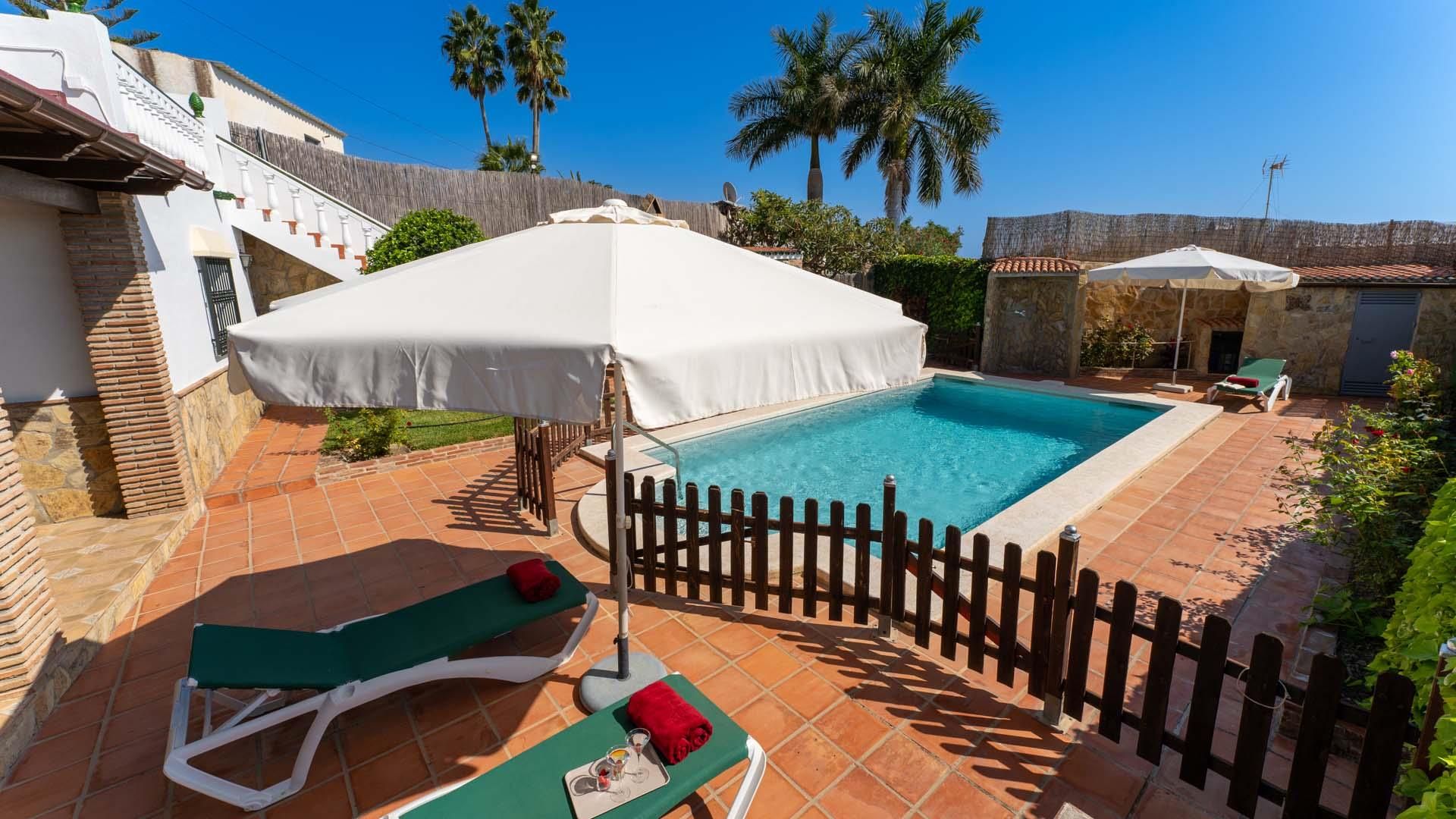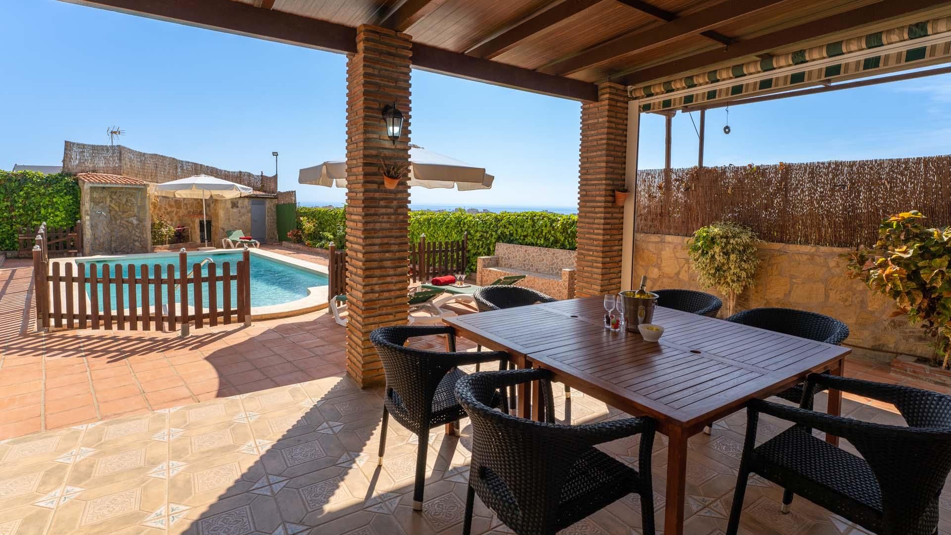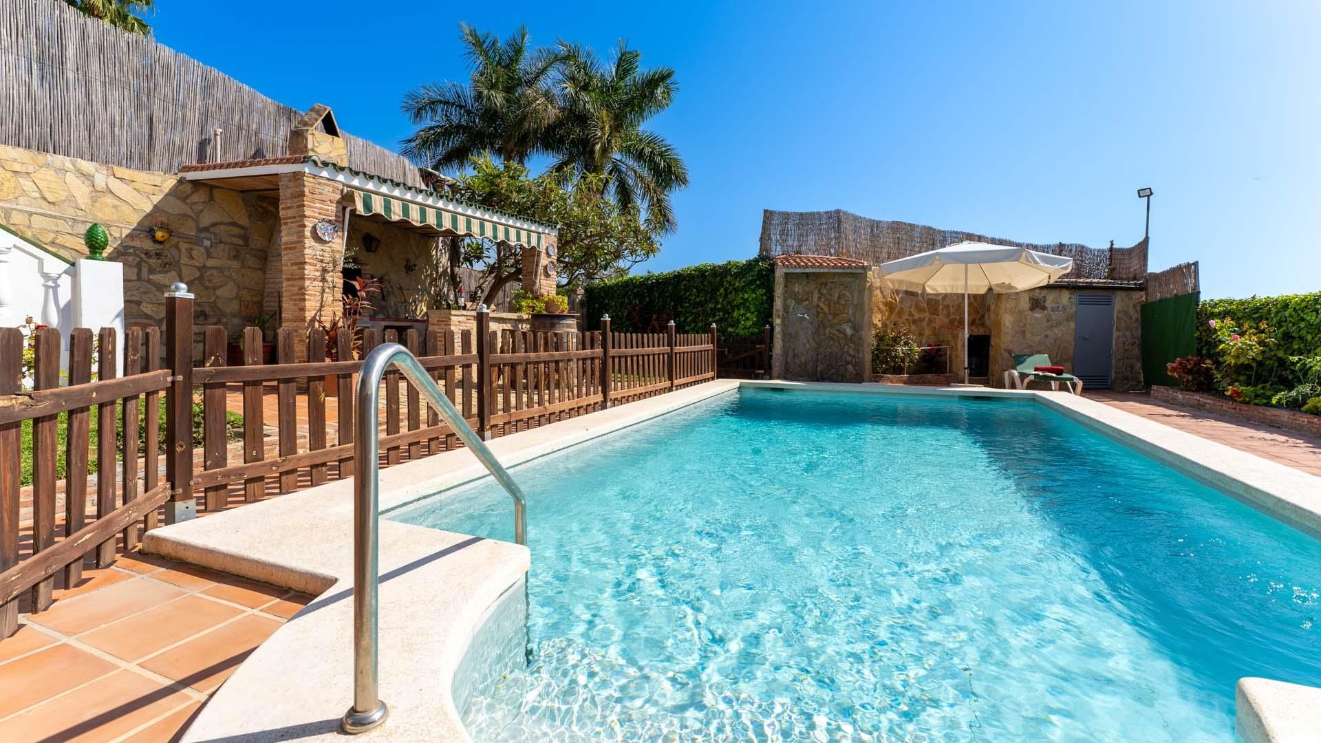 Wspaniały dworek klasyczny w Nerja, Costa del Sol, Hiszpania z prywatnym basenem za 6 osoby. Dom leży w górzystej, wiejskiej, zamieszkałej i plażowej okolicy i 2 km od Burriana plaży. Dworek ma 3 sypialnie i 2 łazienki, na 2 piętrach. Zakwaterowanie oferuje prywatność, piękny ogród z trawnik i drzewa, ładny brodzik dla dzieci i widok na morze, na dolinę, na wieś i na góry. Bliskość plaży, miejsca na zakupy, obiekty sportowe, miejsca do wyjścia, atrakcji i kultury sprawia, że dworek jest idealny aby cieszyć się wakacje w Hiszpania z rodziną lub przyjaciółmi.