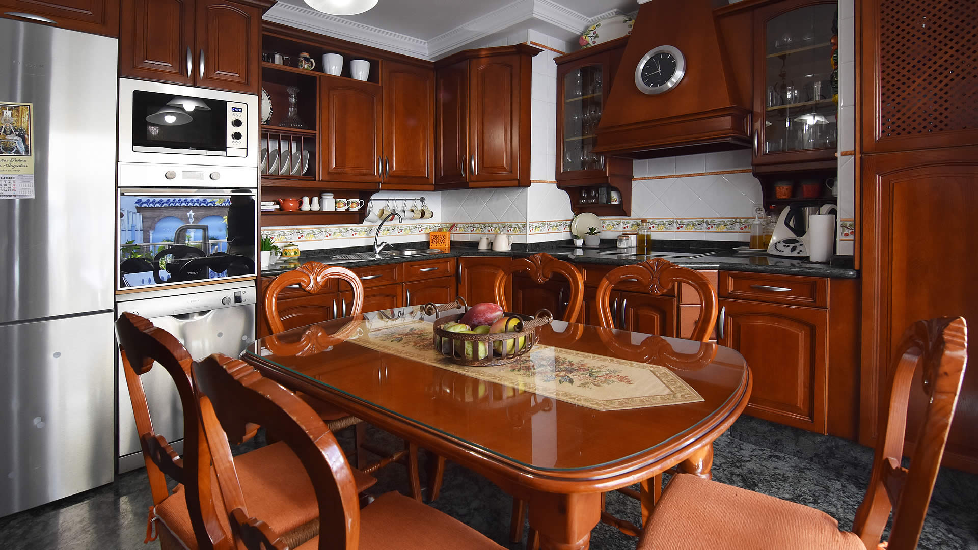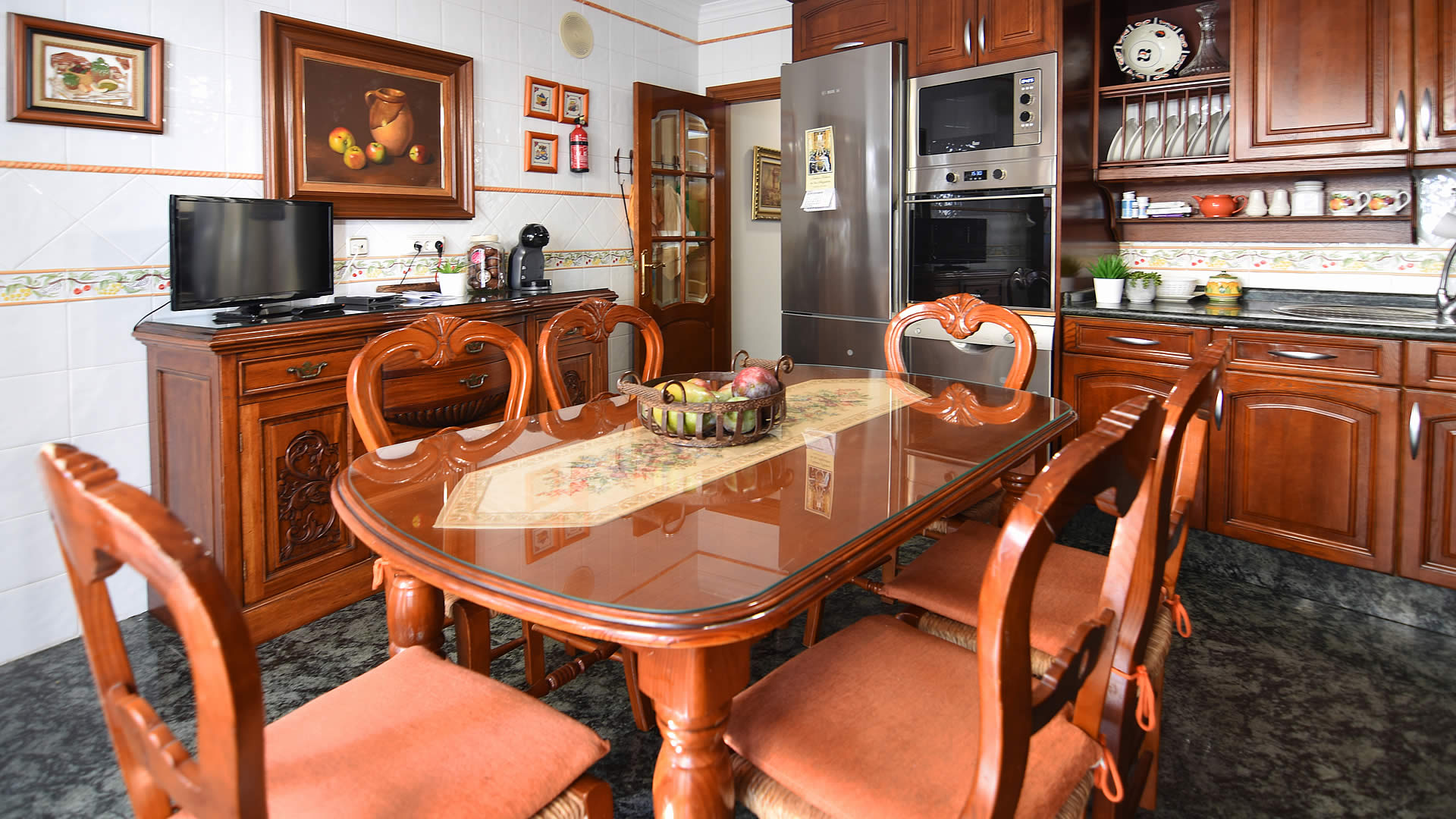 • kuchnia z elektryczną płytą grzewczą, mikrofalówką, zmywarką, lodówką-zamrażarką, ekspresem do kawy, mikserem, tosterem i sokowirówką