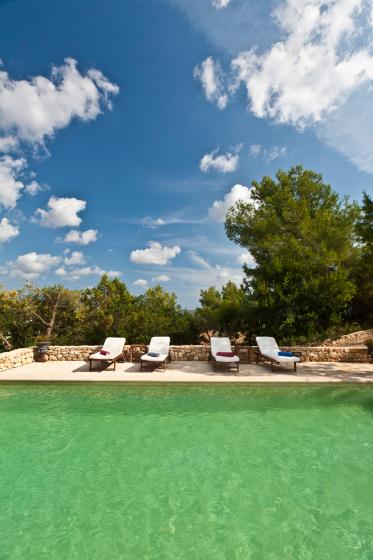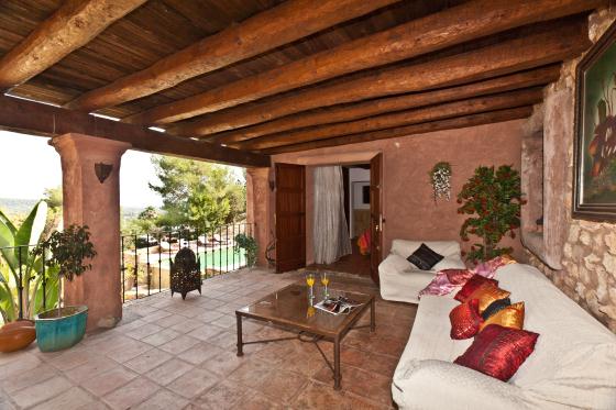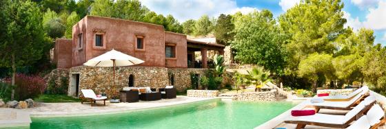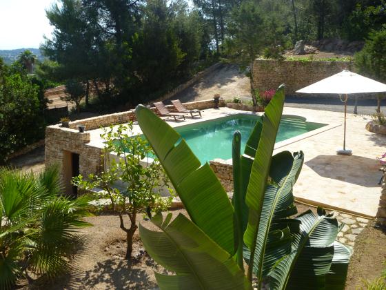 Klasyczna, wygodna willa w Santa Eulalia, Ibiza, Hiszpania z prywatnym basenem za 6 osoby. Dom leży w górzystej, wiejskiej i zalesionej okolicy i 3 km od sta. Eulalia plaży.
