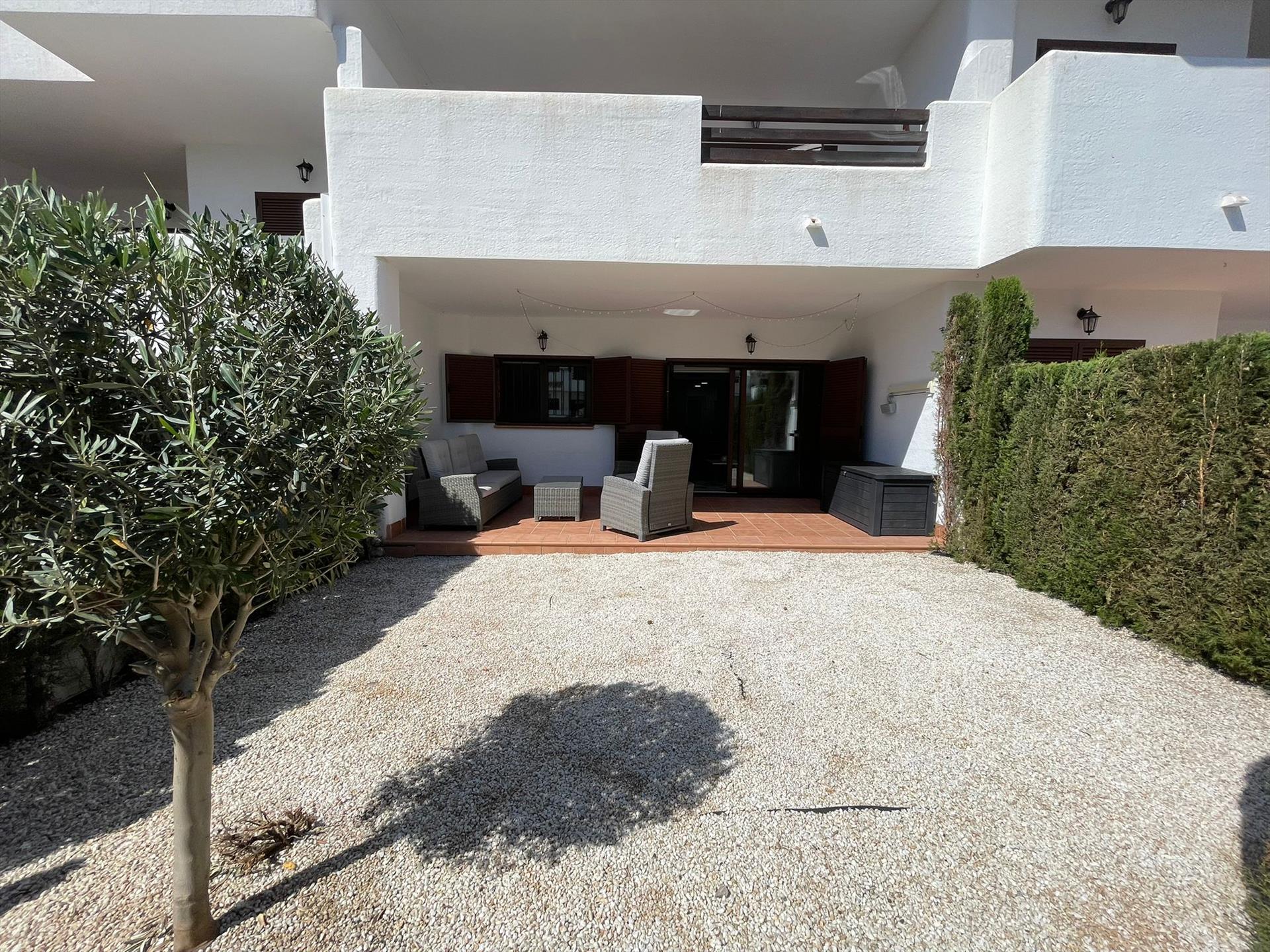 Smuk og luksuriøs lejlighed i San Juan de los Terreros, Andalusien, Spanien med en fælles pool til 4 personer. Lejligheden er beliggende i et resort og i et boligområde ved stranden.