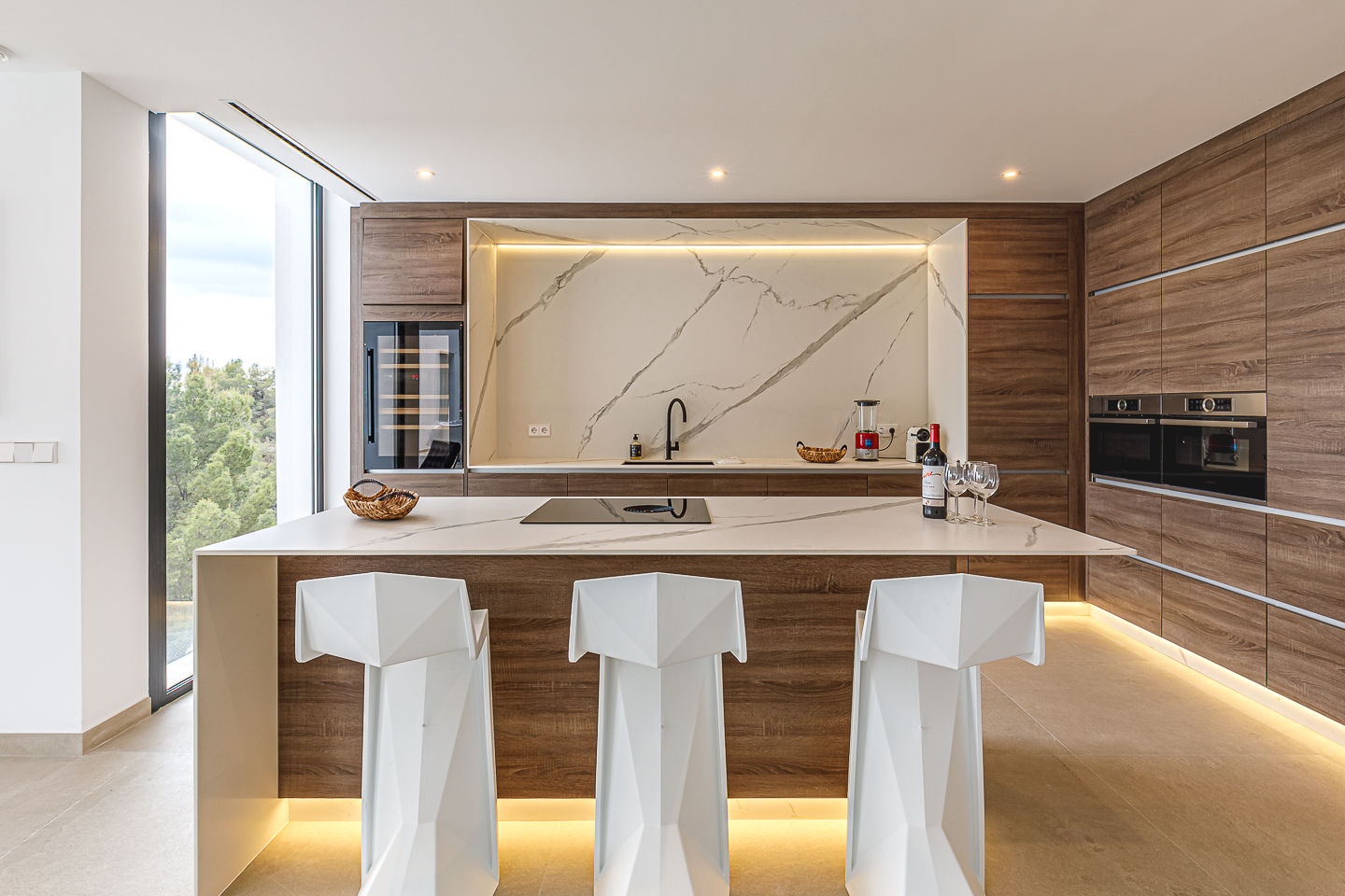 • åbent køkken med spiseplads, induktionskogeplade, elektrisk ovn, mikrobølgeovn, opvaskemaskine, køleskab, fryser, kaffemaskine, elkedel, mixer, brødrister og saftpresser