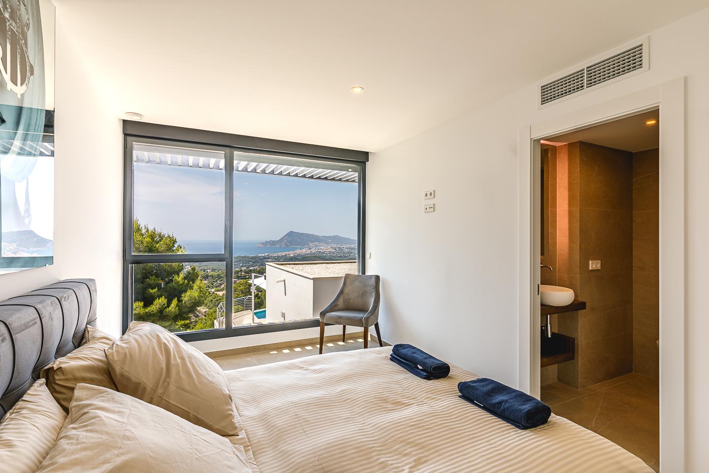 Den luksuriøse villa har 5 soveværelser, 5 badeværelser og 1 gæstetoilet, fordelt over 2 etager. Indkvarteringen tilbyder privatliv, en vidunderlig pool, fantastisk udsigt over bugten, havet og dalen, samt smuk udsigt til bjergene. Dens komfort og nærhed til stranden, shoppingområder, sportsaktiviteter og underholdning gør denne villa til det ideelle luksuriøse sted at tilbringe din ferie i Spanien med familie eller venner.