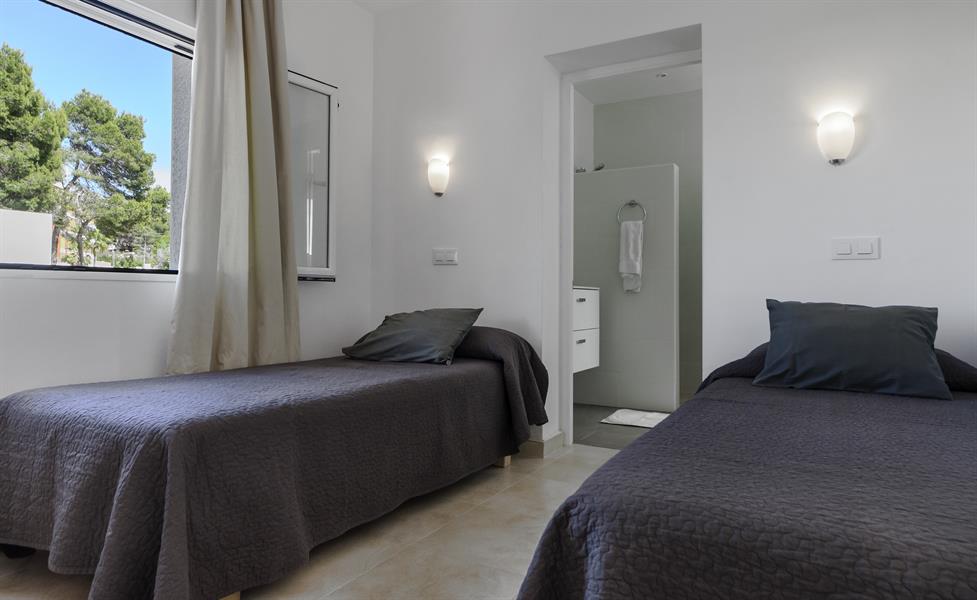 • 3 soveværelser med aircondition, hver med 2 enkeltsenge (200 x 90 cm) og en-suite badeværelse