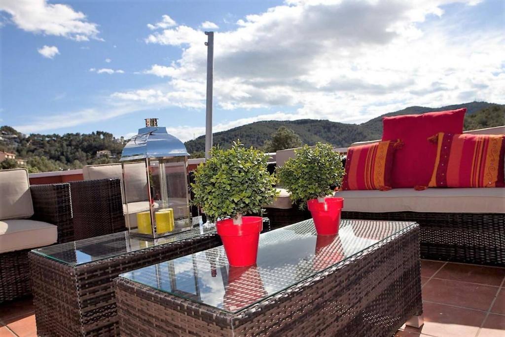 Behagelig villa i Sitges, Costa Dorada, Spanien med opvarmet pool til 10 personer. Huset ligger i et landligt, skovklædt, urbant og bjergrigt kystområde, tæt på en tennisbane og 4 km fra en 5-minutters køretur.