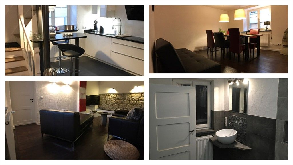 - Wohnküche mit Induktionsherd, Elektroofen, Geschirrspülmaschine, Kühl-Gefrierkombination, Kaffeemaschine, Wasserkocher, Mixer, Brotröster und Entsafter