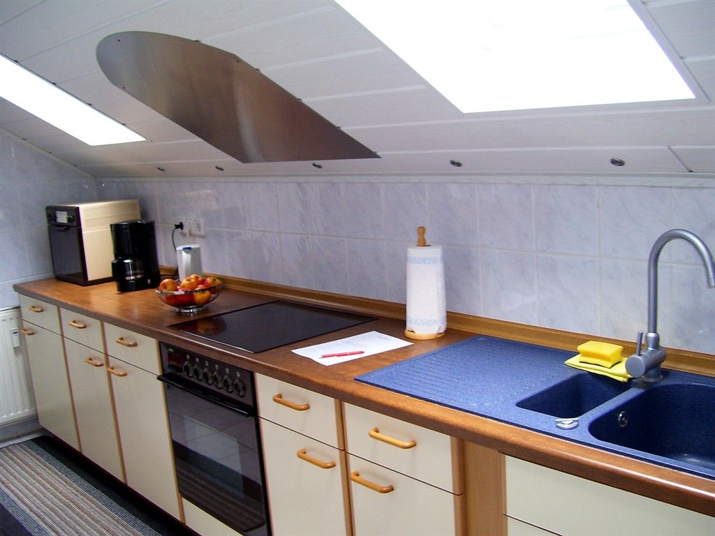 - Küche mit Elektroherd, Elektroofen, Mikrowelle, Geschirrspülmaschine, Kühl-Gefrierkombination, Kaffeemaschine, Wasserkocher, Mixer, Brotröster, Entsafter und Wasserspender (mit heissem und kaltem Wasser)
