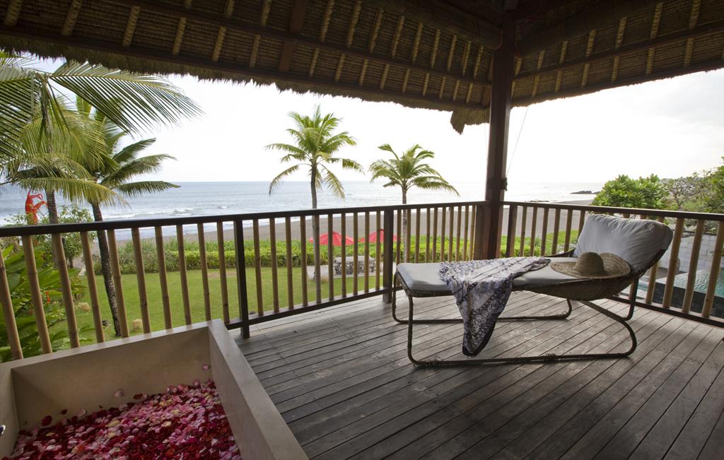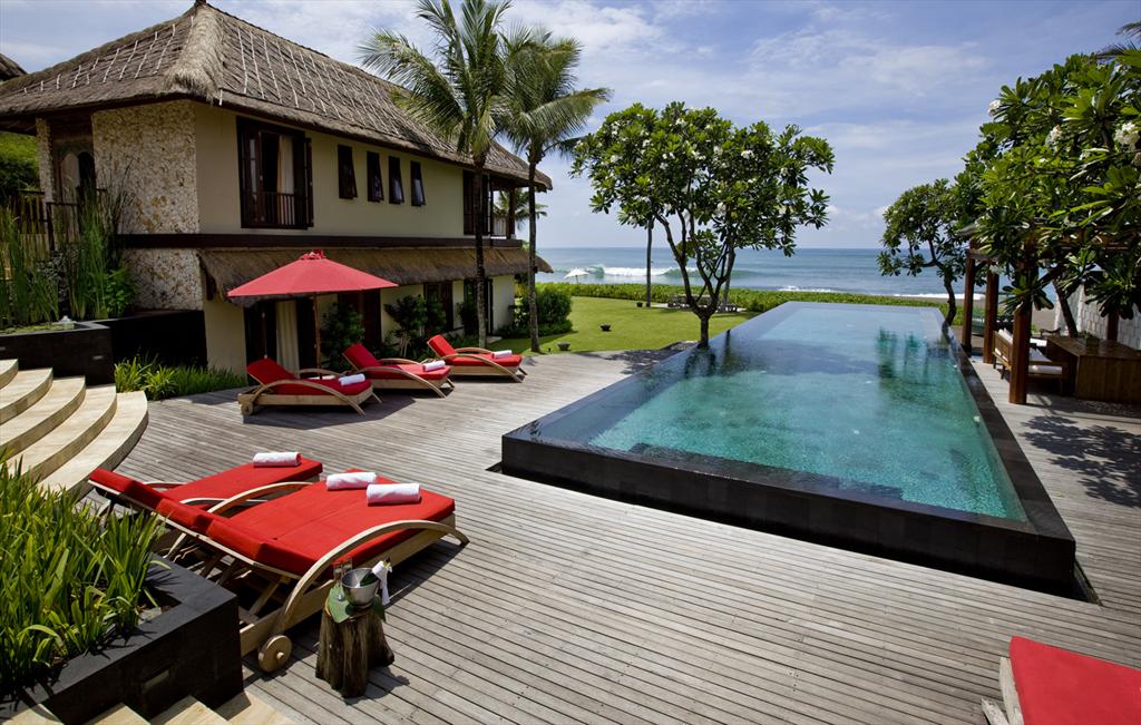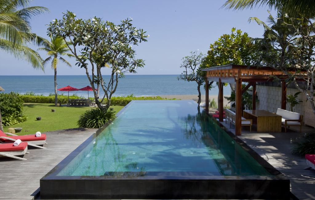 Die Luxus-Villa hat 5 Schlafzimmer, 5 Badezimmer und 1 Gästetoilette, verteilt über 2 Etagen. Die Unterkunft bietet viel Privatsphäre, einen wunderschönen Garten mit Rasen und Bäumen, einen grossen wunderschönen Pool, einen wunderschönen Blick auf den Strand und einen schönen Blick auf das Meer. Die Bequemlichkeit und die Nähe vom Strand, Sportaktivitäten, Orten zum Ausgehen, Sehenswürdigkeiten und Kultur machen dies zu einer ausgezeichneten Luxus-Villa um Ihre Ferien in Indonesien zu verbringen mit Familie und Freunden.