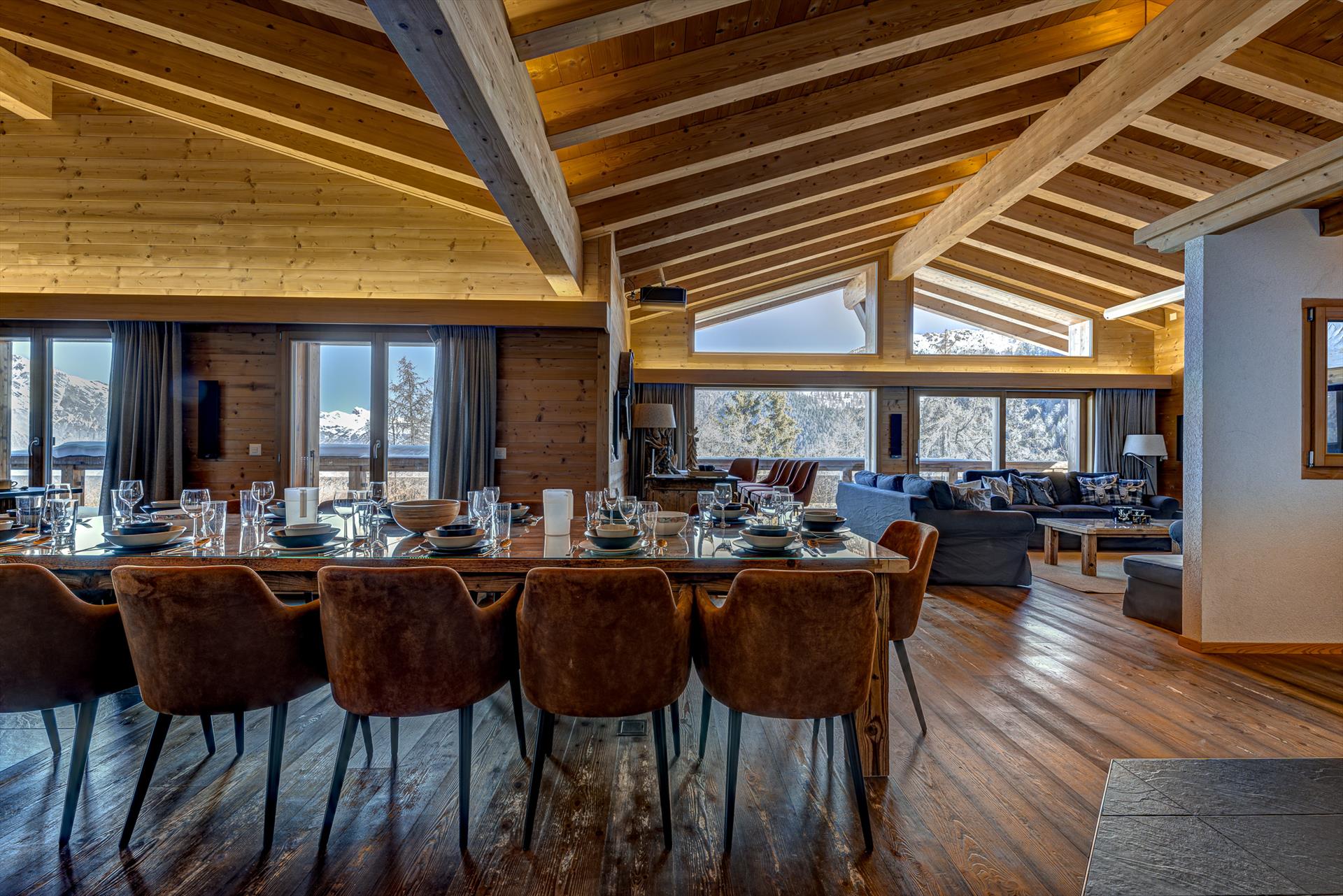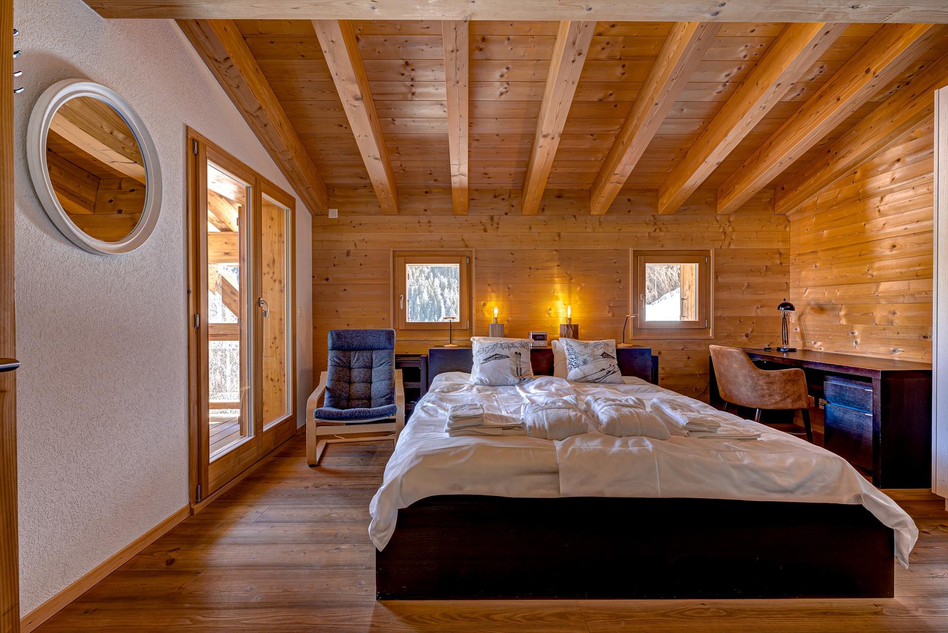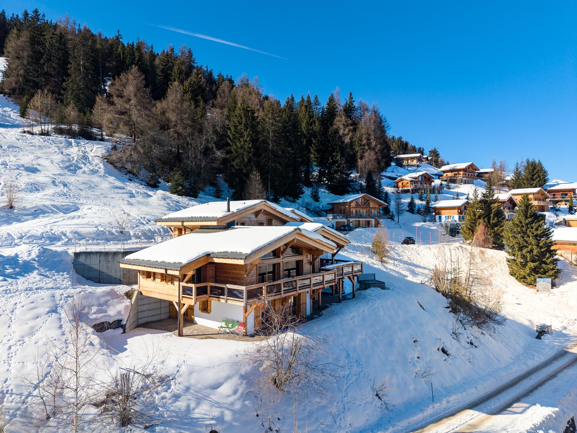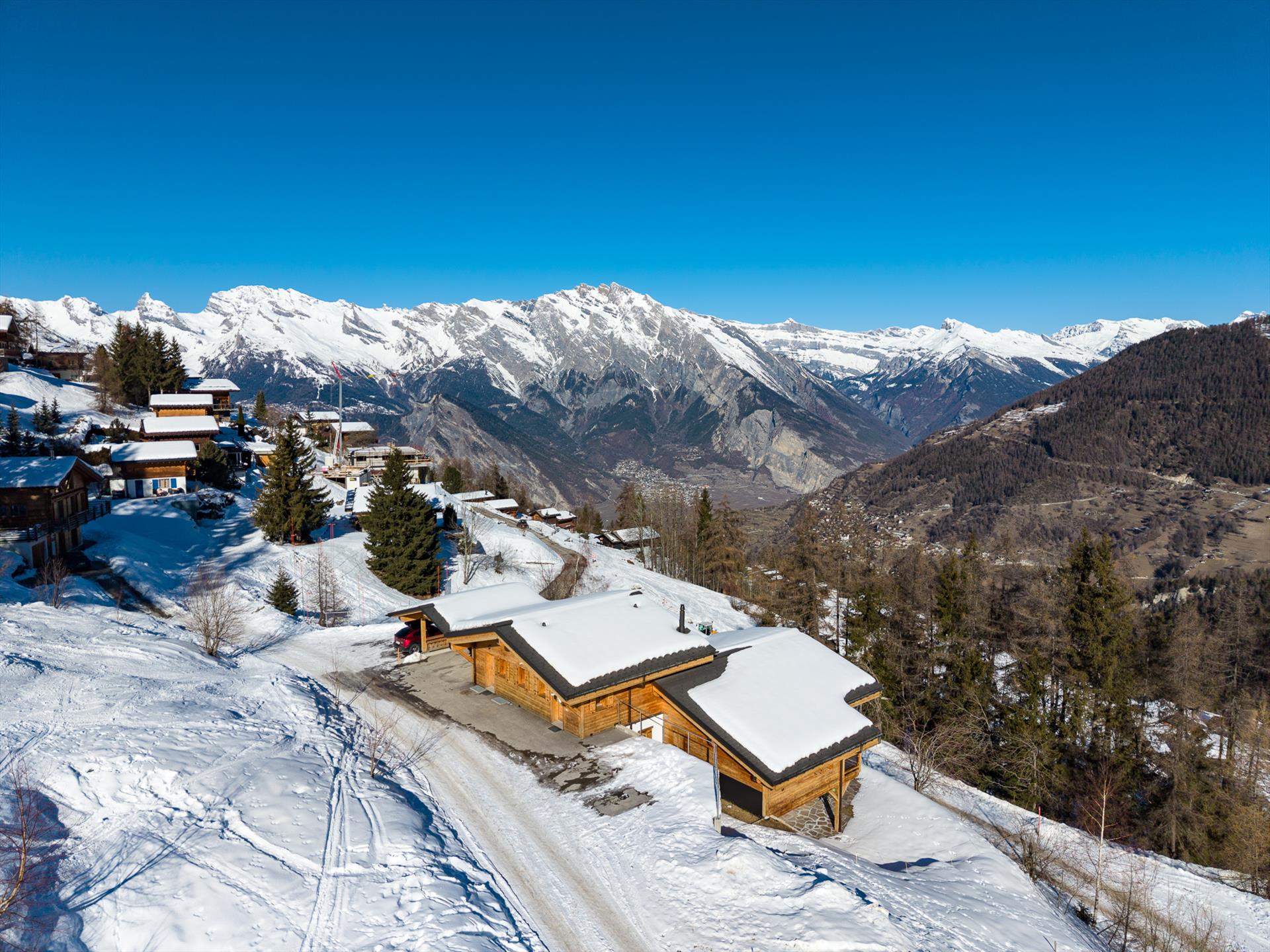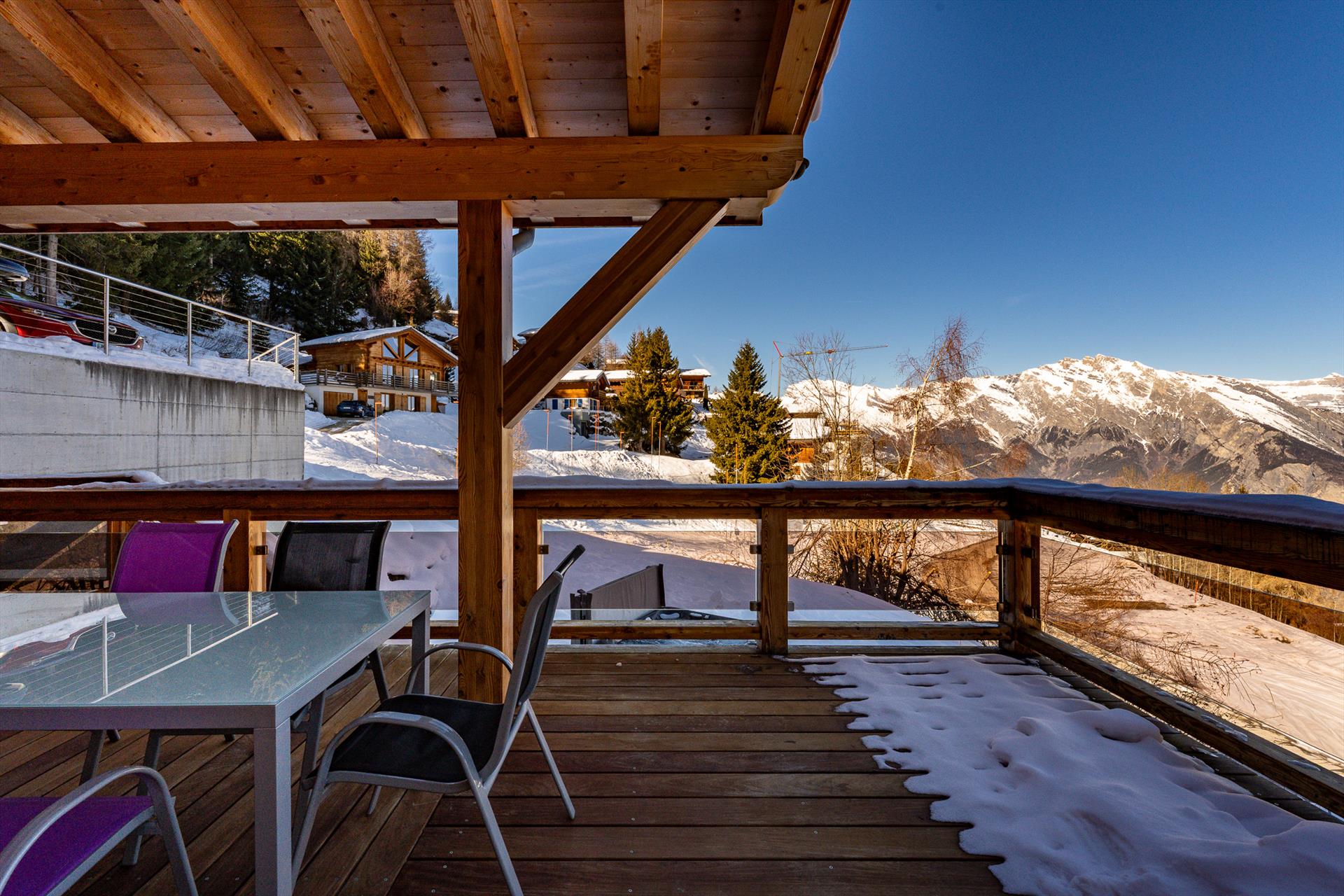 Mit seiner erhöhten Lage und dem atemberaubenden Blick auf die Berge in alle Richtungen ist es schwer, in der Ruhe und Stille, die dieses Chalet umgibt, nicht zu entspannen. Während der Skisaison sind Sie von einem Winterwunderland mit sanft treibenden Schneeflocken und einer Landschaft wie aus dem Bilderbuch umgeben. An einem Tag mit blauem Himmel reicht der Blick 20 km weit, bis zu den Gipfeln des Haut de Cry und des Mont Gond, und in der anderen Richtung bis zum legendären Vallon d'Arby und seiner unverspurten Skiroute. Ab dem frühen Frühling lullt Sie das bezaubernde Vogelgezwitscher der nahen Bäume vom Stress des Alltags ein. Die Berglandschaften sind sowohl in schneereichen Wintern als auch in sonnigen Sommern unglaublich schön.