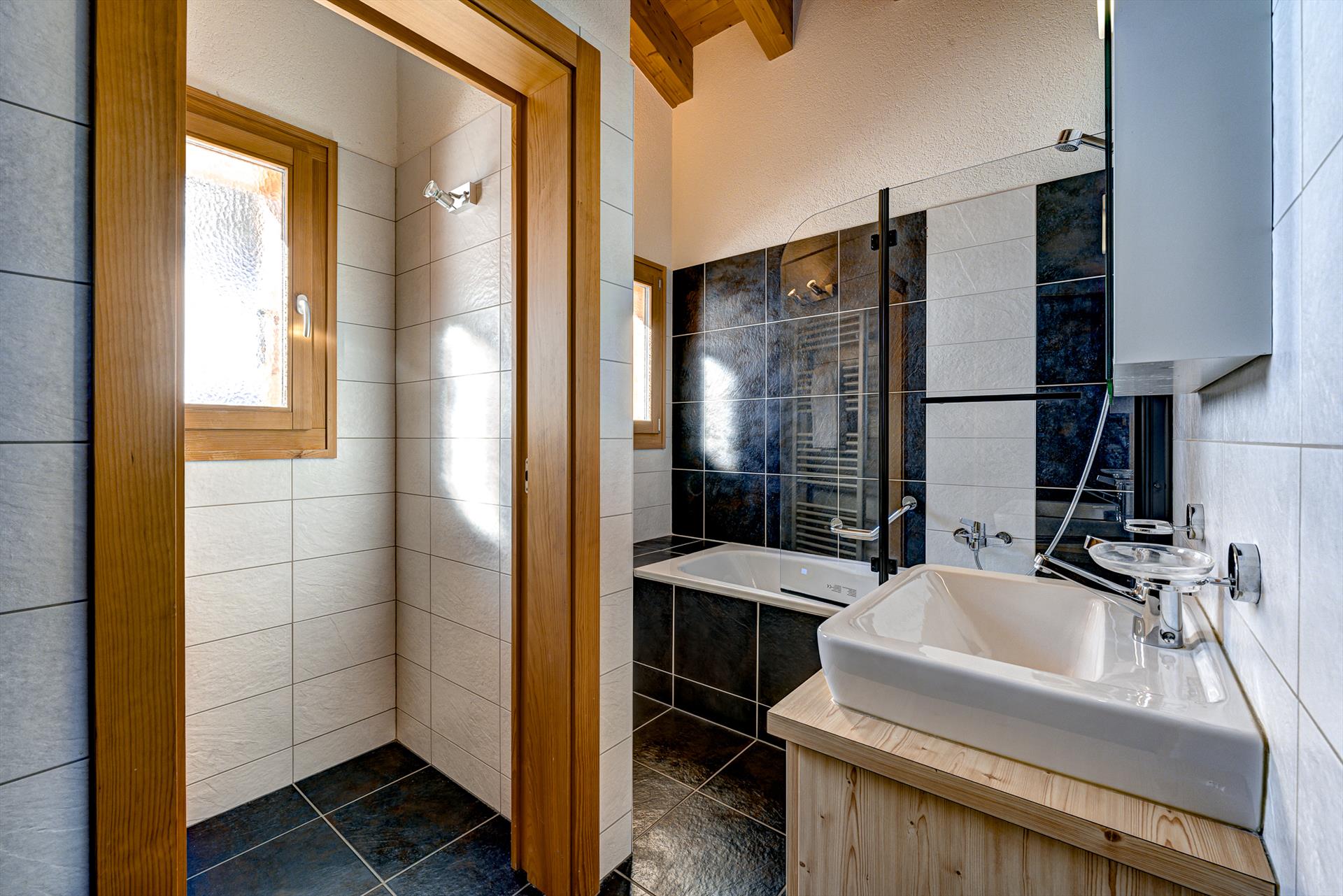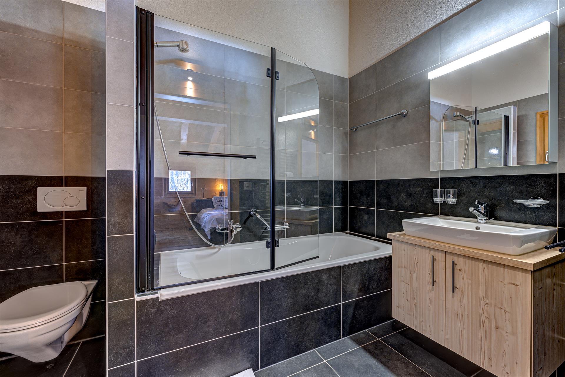 Der einladende Saunabereich mit seiner großen Sauna und dem Badezimmer kann nach einem aufregenden Tag auf der Piste eine wunderbare Oase sein. Draußen auf der Terrasse befindet sich der Whirlpool in einer fantastischen Lage, um in die Umgebung einzutauchen. Er ist ideal für ein beruhigendes Après-Ski, einen ruhigen Moment der Sternenbeobachtung um Mitternacht oder sogar einen spritzigen Nachmittag mit den Kindern! Das wärmende Wasser, die Massagedüsen und die Luftblasen sind ein besonderer Genuss in der stillen und frischen Bergluft des Winters.