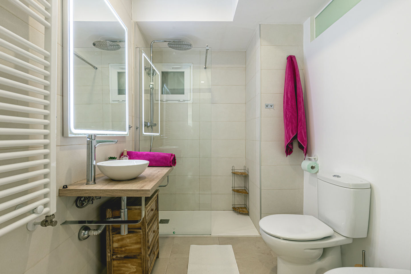 • Badezimmer mit Waschbecken, Dusche, Bidet und Toilette