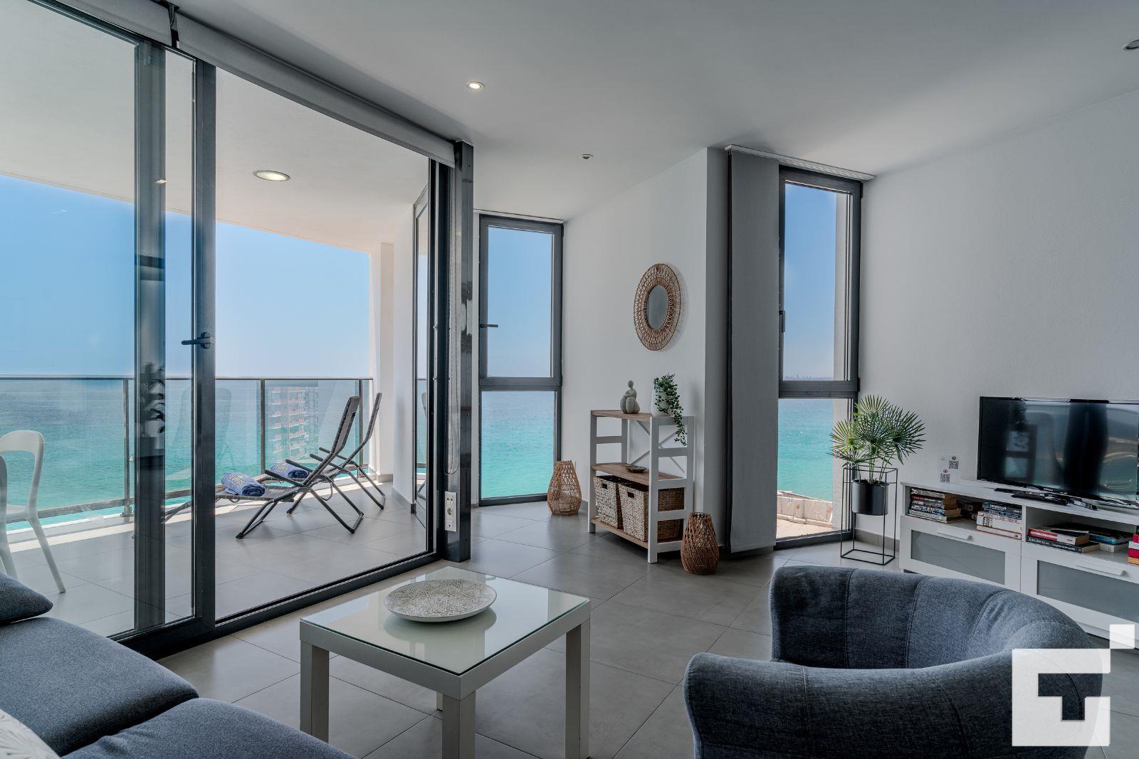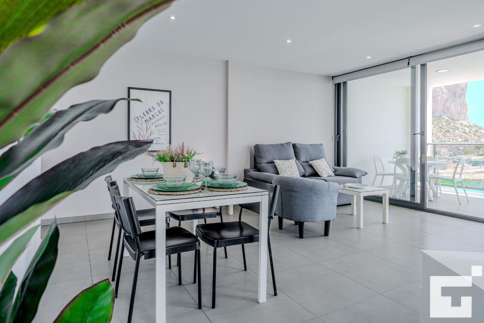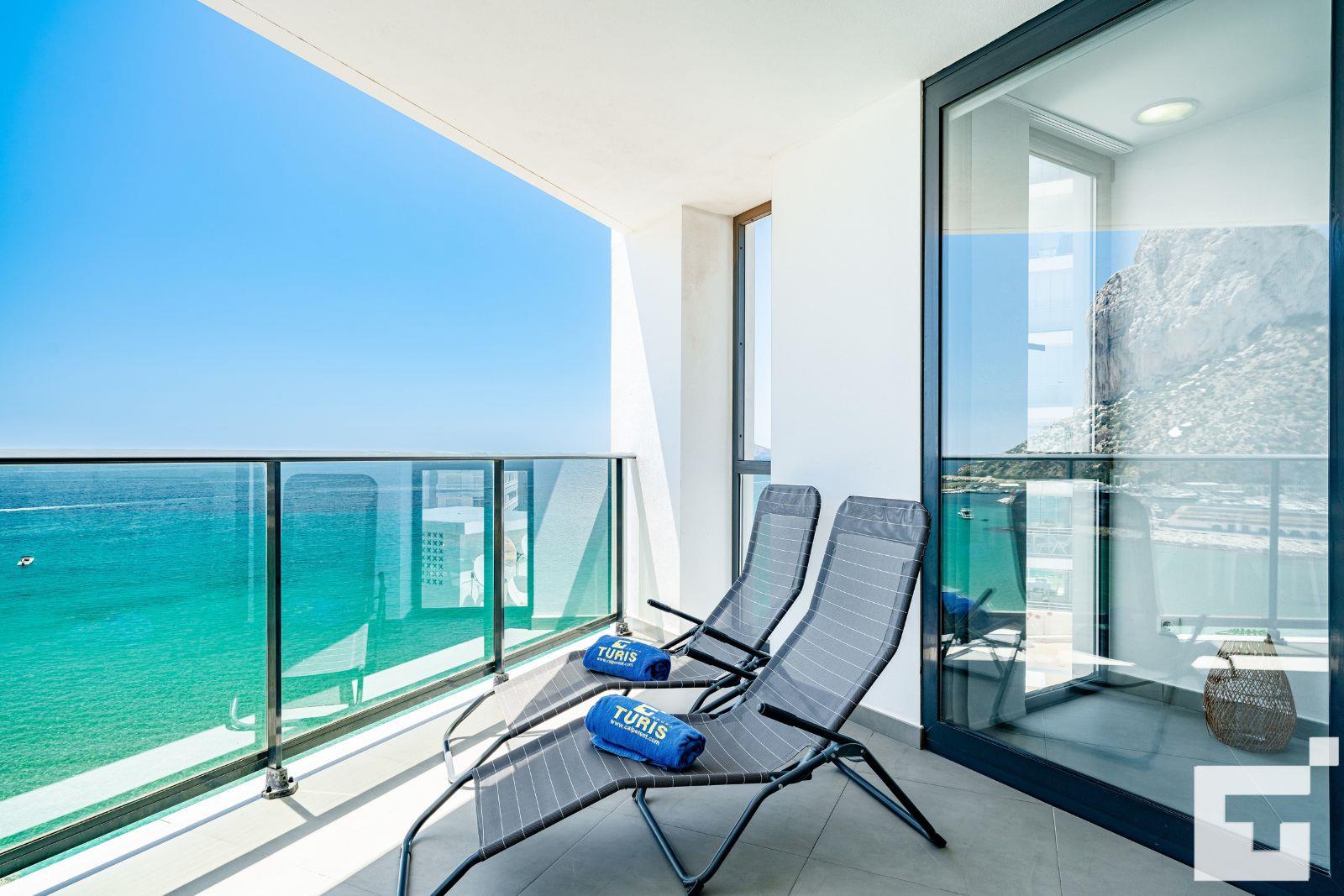 Genieße einen unvergesslichen Urlaub in diesem geräumigen und hellen Apartment in erster Linie am wunderschönen Strand Playa Cantal Roig in Calpe (Costa Blanca). Mit Platz für bis zu 4 Personen und einem modernen Design bietet diese Unterkunft einen atemberaubenden Blick auf das Meer, den Peñón de Ifach und die Bucht – all das kannst du von der privaten Terrasse aus bewundern.