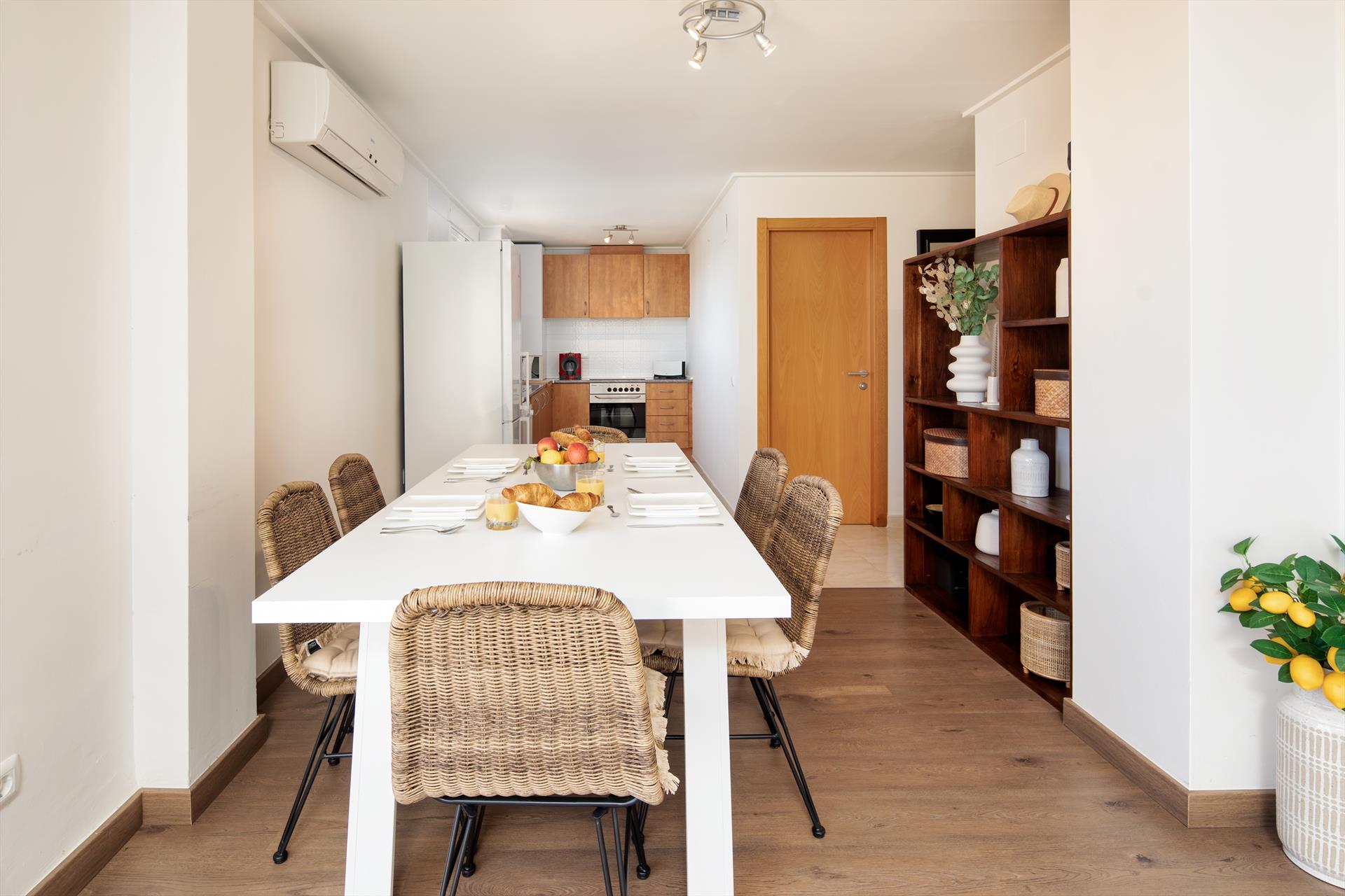 Innenausttatung: Kühlschrank, Herd und Backofen/oder Elektrogrill, Kaffeemaschine, Toaster, Wasserkocher, Bügeleisen und Bügelbrett, Pürierstab.