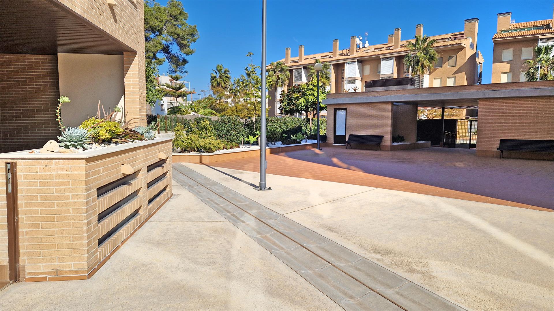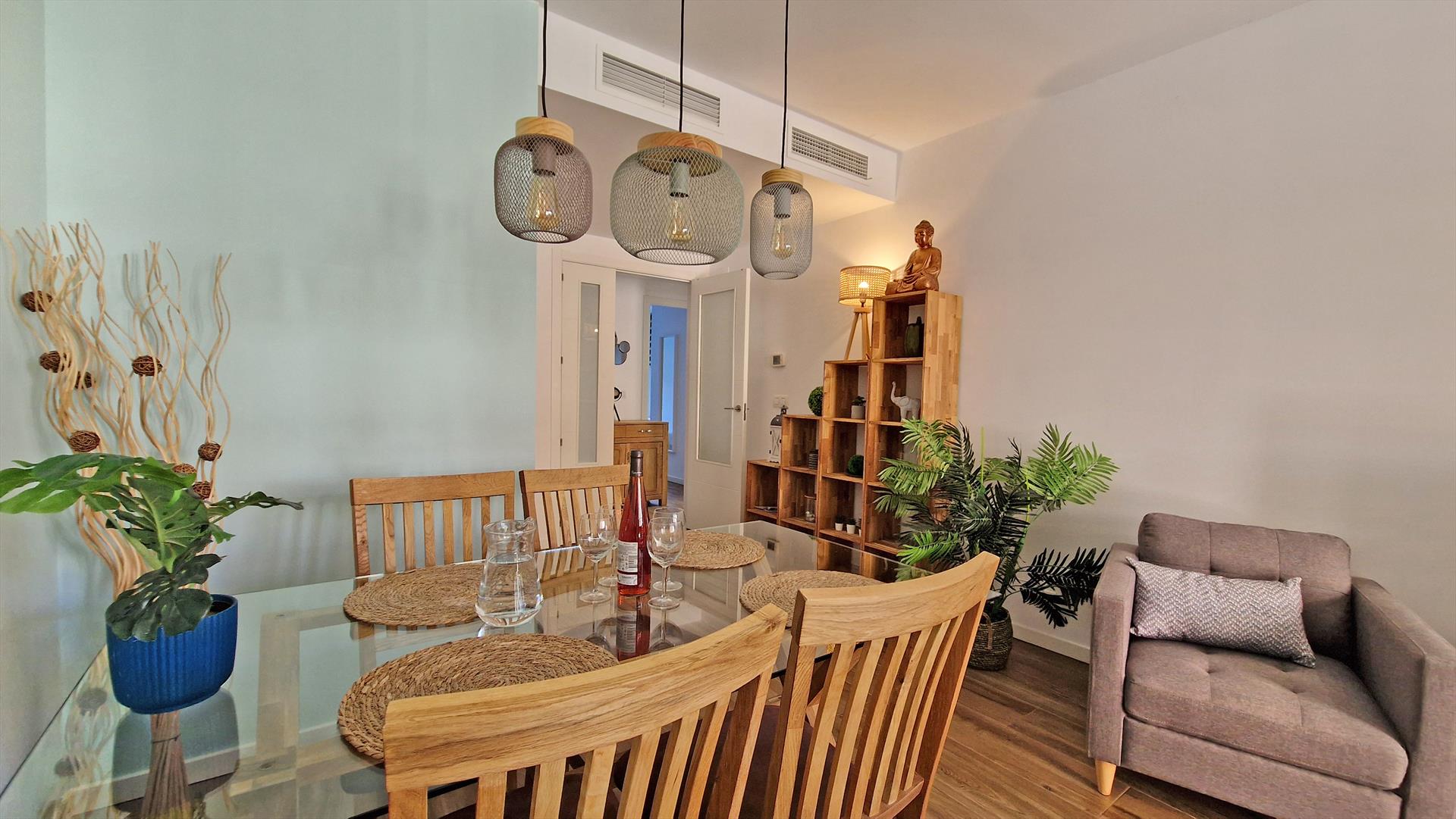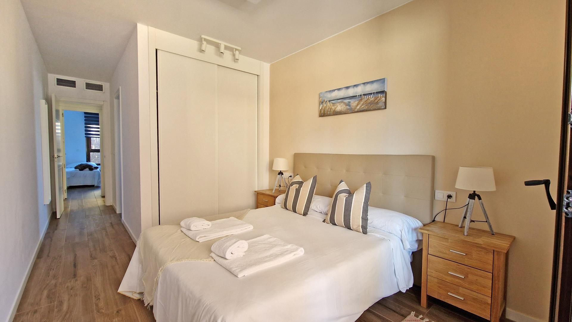 Brisas del Arenal ist ein moderner Wohnkomplex (3. Reihe zum Meer) und wurde im Juli 2018 fertig gestellt. Die Ferienwohnung liegt im Erdgeschoss mit einer schönen Terrasse, die direkten Zugang zum Poolbereich und den Gemeinschaftsanlagen bietet. Das Appartement wurde komplett neu möbliert und bietet hochwertige Möbel, sowie eine sehr moderne Küche, 2 moderne Badezimmer und alle Annehmlichkeiten wie zentrale Klimaanlage, High-speed Internetanschluss, Bluetooth Lautsprecher, TV, etc.
