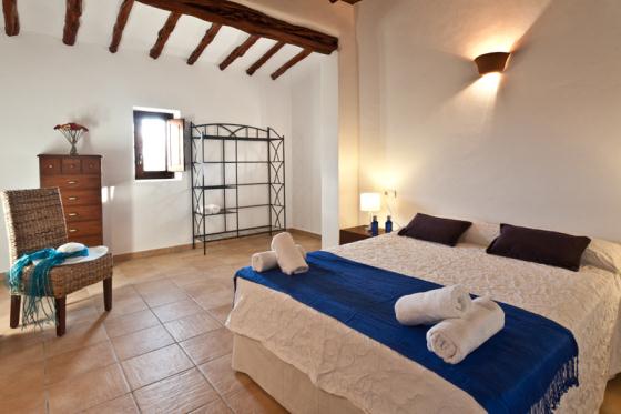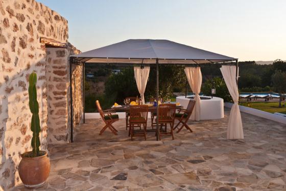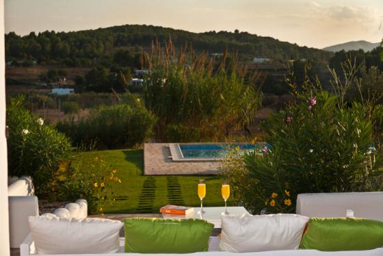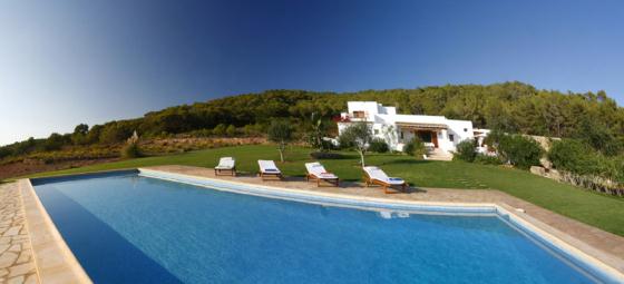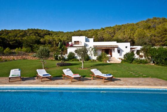 Komfortable Villa mit privatem Pool in Santa Eulalia, Ibiza, Spanien für 9 Personen. Das Haus liegt in einer hügeligen, ländlichen und waldreichen Umgebung.