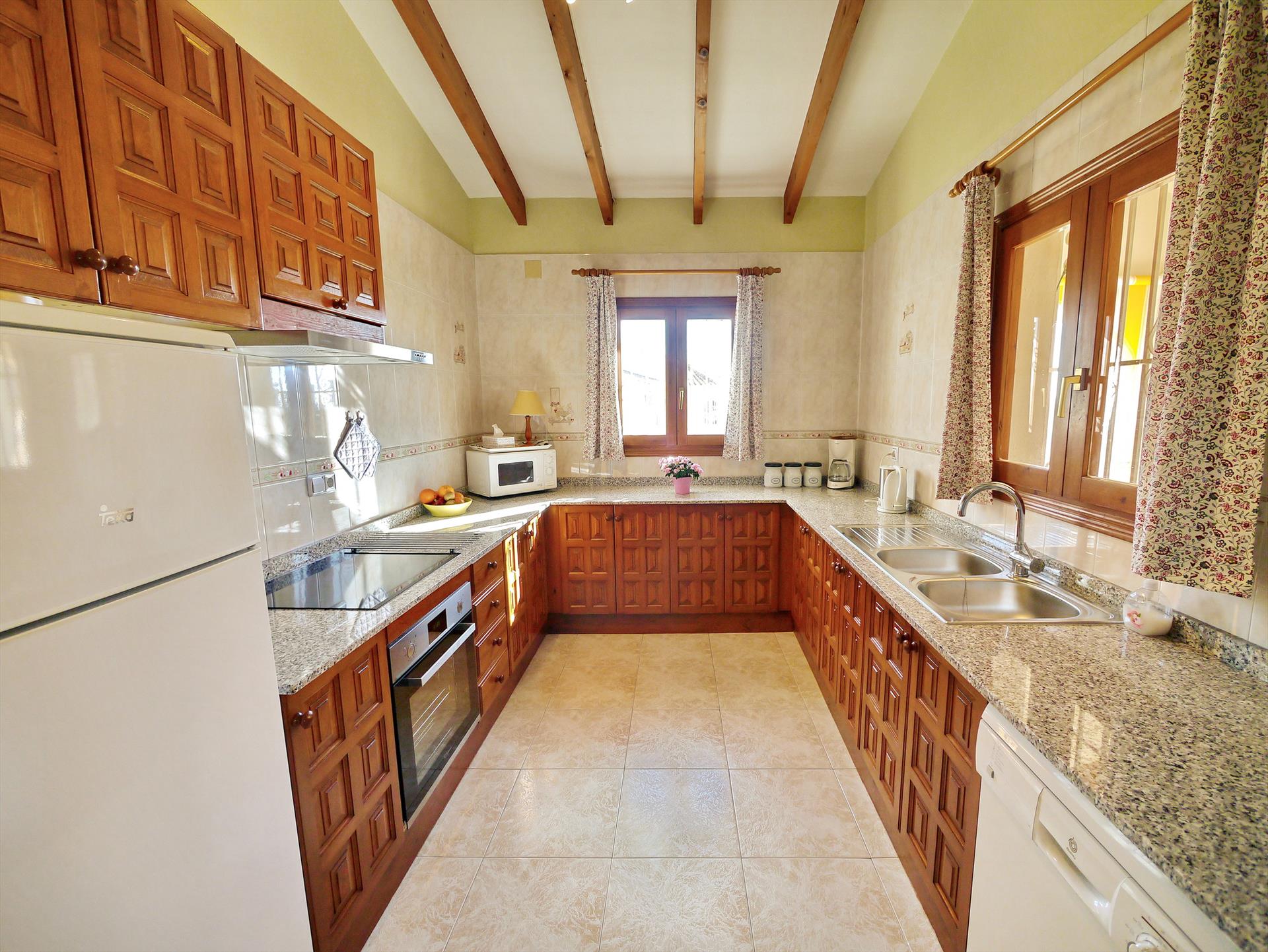 • åpent kjøkken med elektrisk platetopp, elektrisk ovn, mikrobølgeovn, oppvaskmaskin, kjøleskap-fryser, kaffemaskin, vannkoker og brødrister