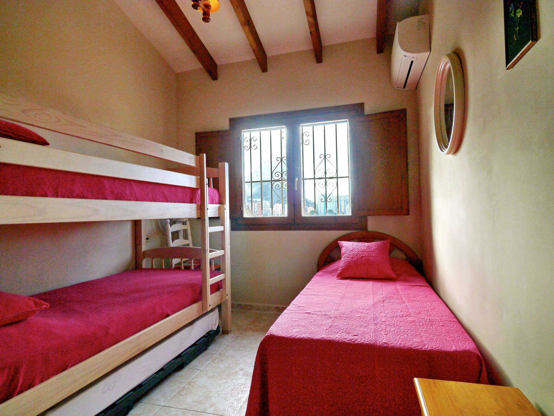 • soverom med klimaanlegg, enkeltseng og køyeseng