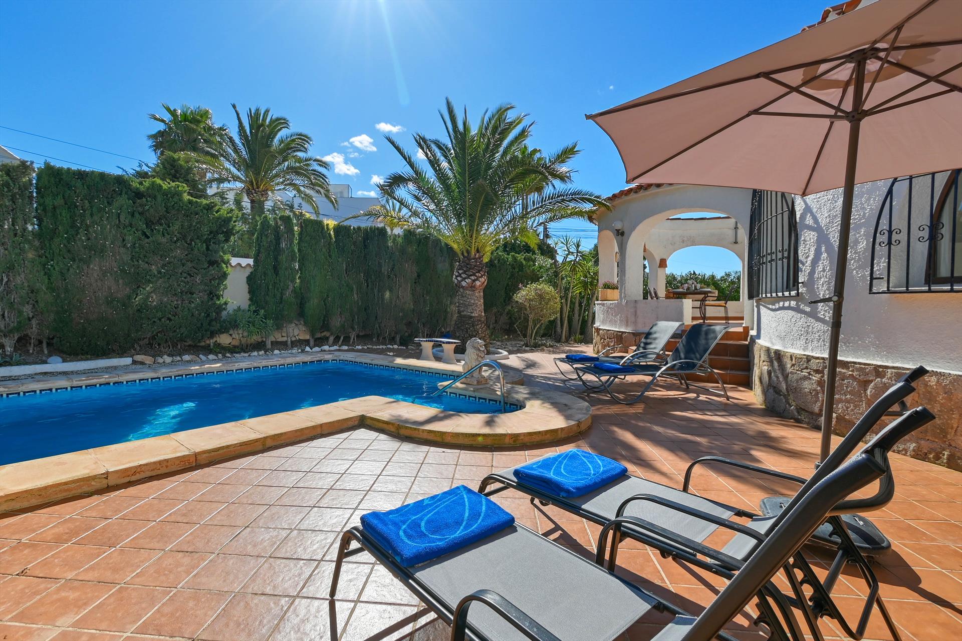 Klassisk og hyggelig villa i Jávea, Costa Blanca, Spania med privat basseng for 4 personer. Huset ligger i et boligstrøk nær stranden.