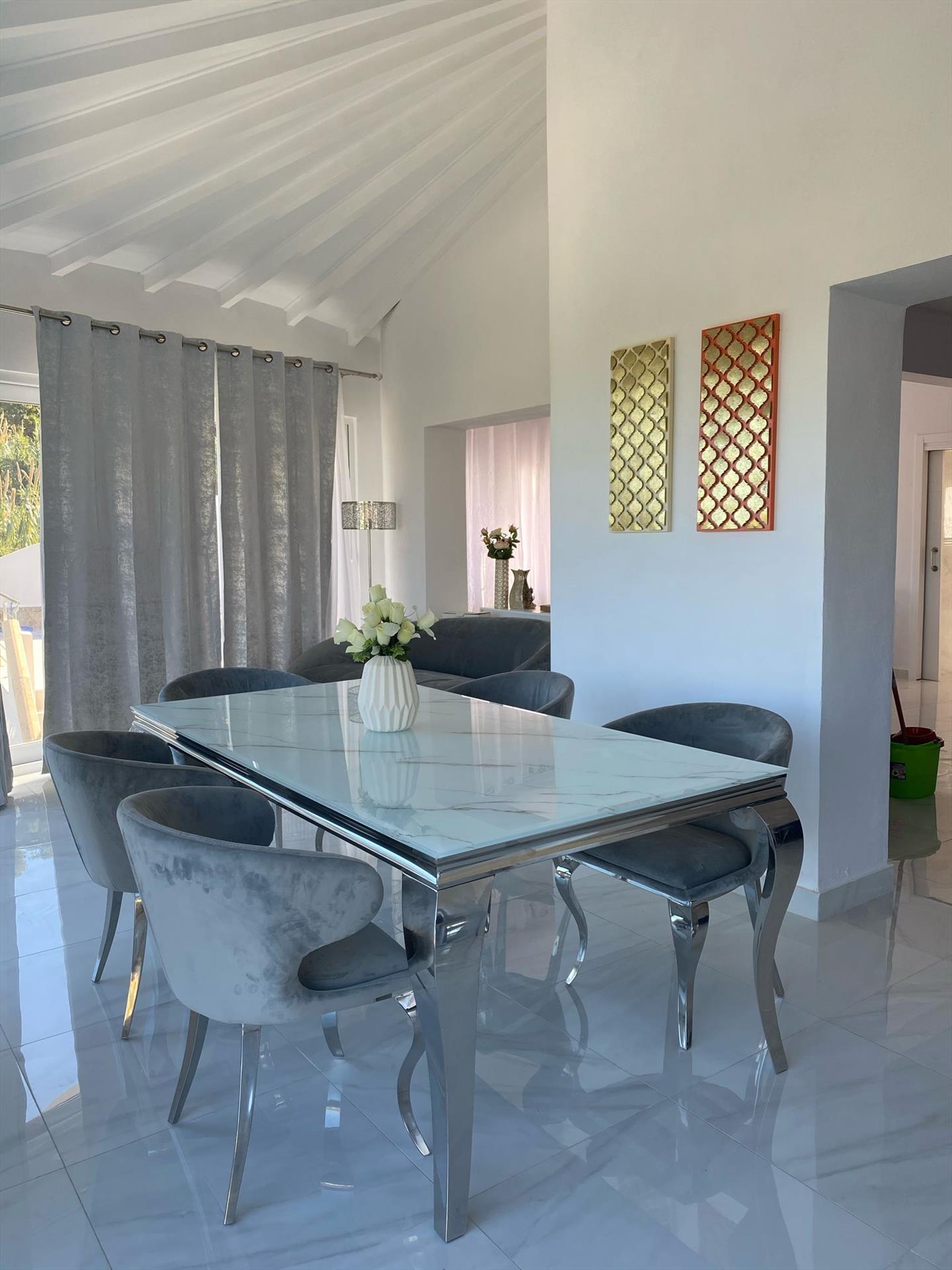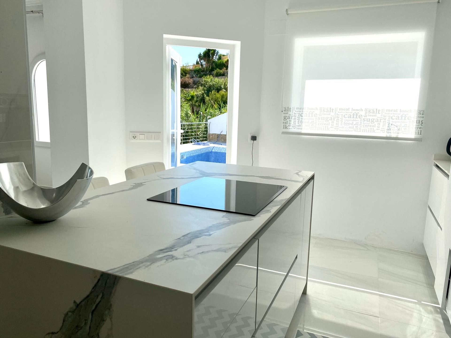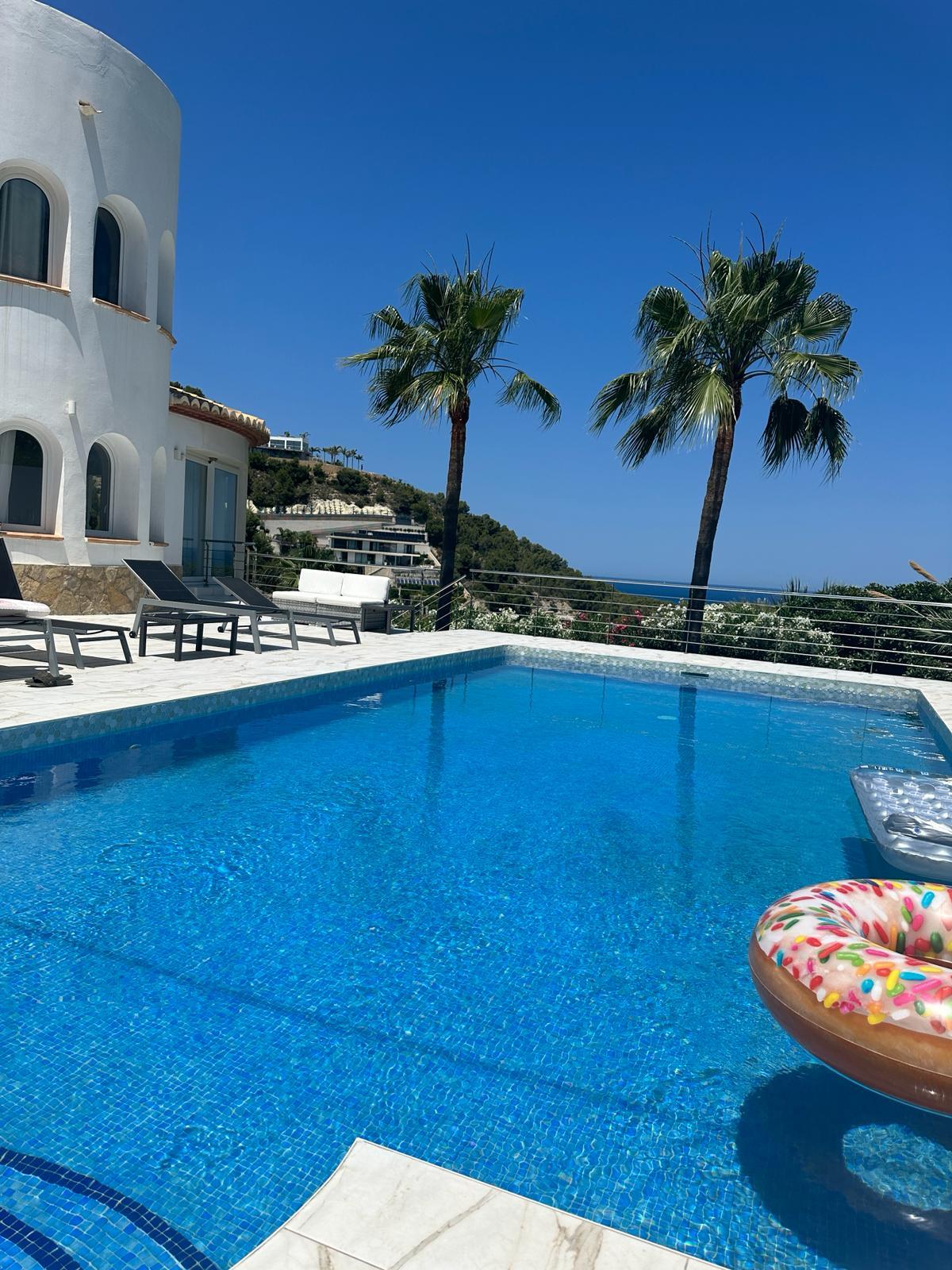 Fantastisk og luksusvilla i Javea, Costa Blanca, Spania med privat svømmebasseng for 6 personer. Villaen befinner seg i et kupert og residentiellt strandområde, med kort afstand til restauranter og barer og 2 km fra stranden. Villaen har 3 soverom, 3 bad og 1 gjestetoalett, fordelt over 2 etasjer. Feriebolig byr på mange privatlivet, en hage med plen, grus og trær og vakker utsikt over havet, dalen og fjellen. Komforten og nærheten av stranden og steder å gå ut gjør villaen ideell å tilbringe ferien i Spania med familie eller venner.
