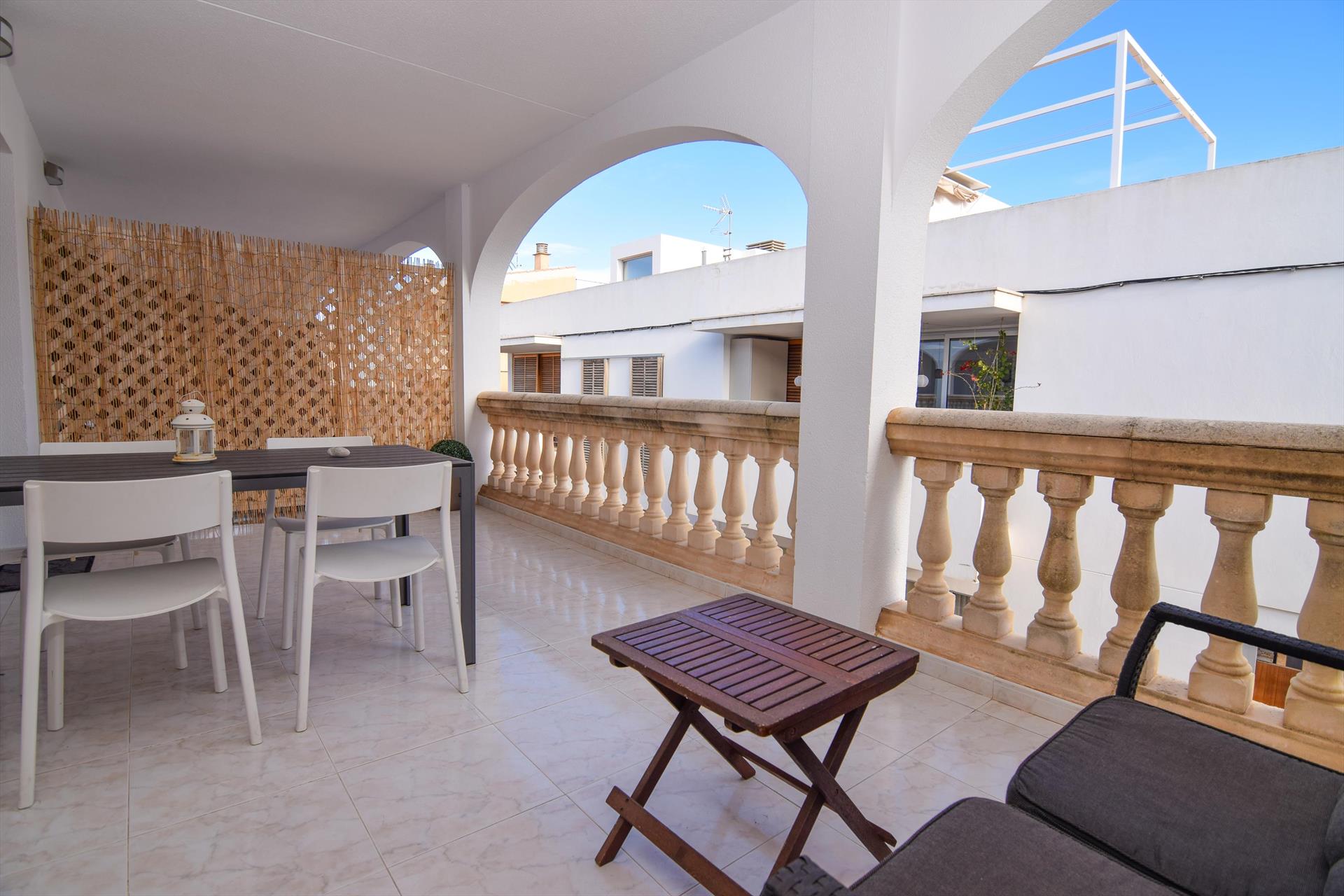 Leilighet i Colònia De Sant Pere, Mallorca, Spania for 2 personer. Huset befinner seg på i et residentiellt strandområde, med kort afstand til restauranter og barer og supermarkeder og 50 m fra 50-stranden. Huset har 1 soverom og 1 bad. Feriebolig byr på en utsikt over gaten. Nærheten av stranden, innkjøpssteder og steder å gå ut gjør leiligheten passende å tilbringe ferien i Spania.