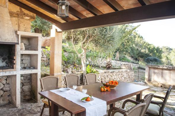 Villa med privat svømmebasseng i Es Carritxo, på Mallorca, Spania for 8 personer. Huset befinner seg på i et landlig og bjergrigt område. Villaen har 4 soverom og 3 bad, fordelt over 3 etasjer. Feriebolig byr på fantastisk utsikt over havet.