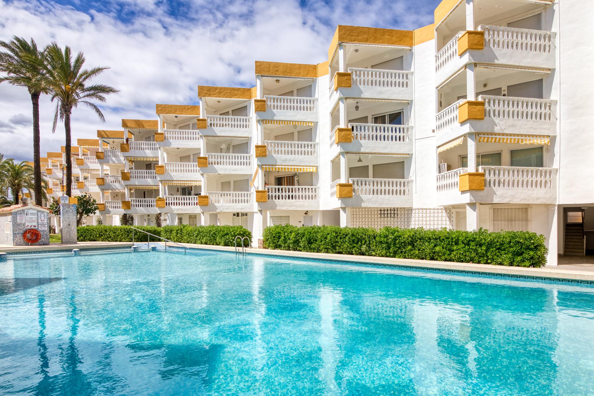 This apartment  with direct access to the sandy beach of Las Marinas is located between km 3 and km 4 in Denia, Las Brisas, a very popular area, ideal for all beach lovers. The holiday apartment is well furnished and well equipped and is located in a very well-kept residential complex on the beachfront. It has a nice terrace with views of the community pool and the gardens with palm trees and grass. The large communal swimming pool with paddling pool and the beautiful communal garden are ideal for a family with children. Right in front of the residential complex there is a bus stop, so you can reach the center of Denia with its many shops, restaurants and bars without a car. Several supermarkets, bars, restaurants and clubs are located in the immediate vicinity. The apartment is located on the first floor without an elevator.