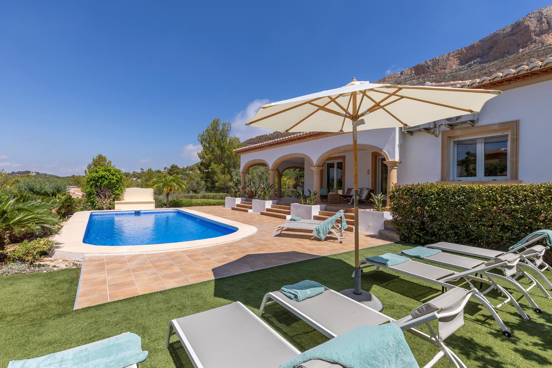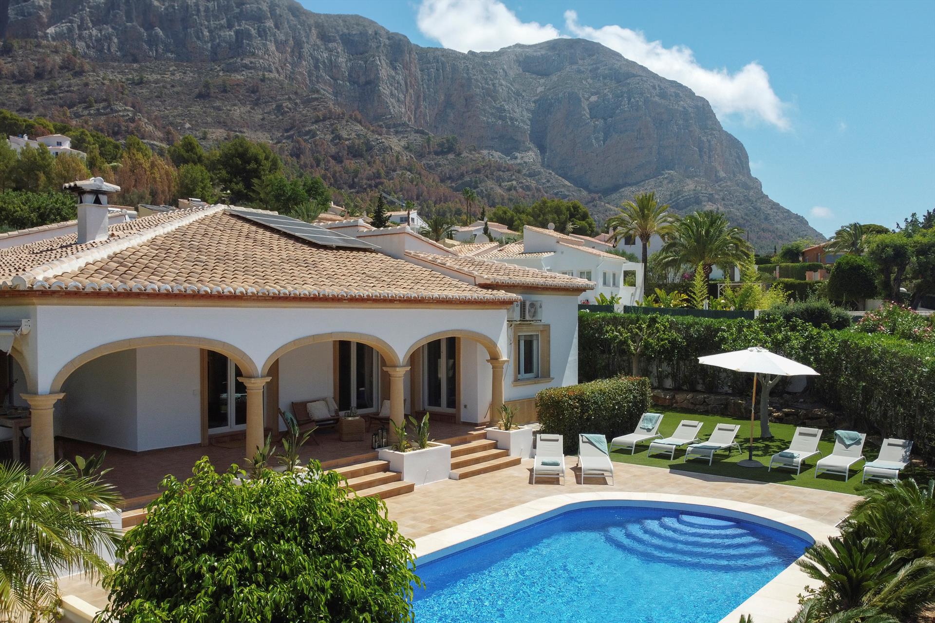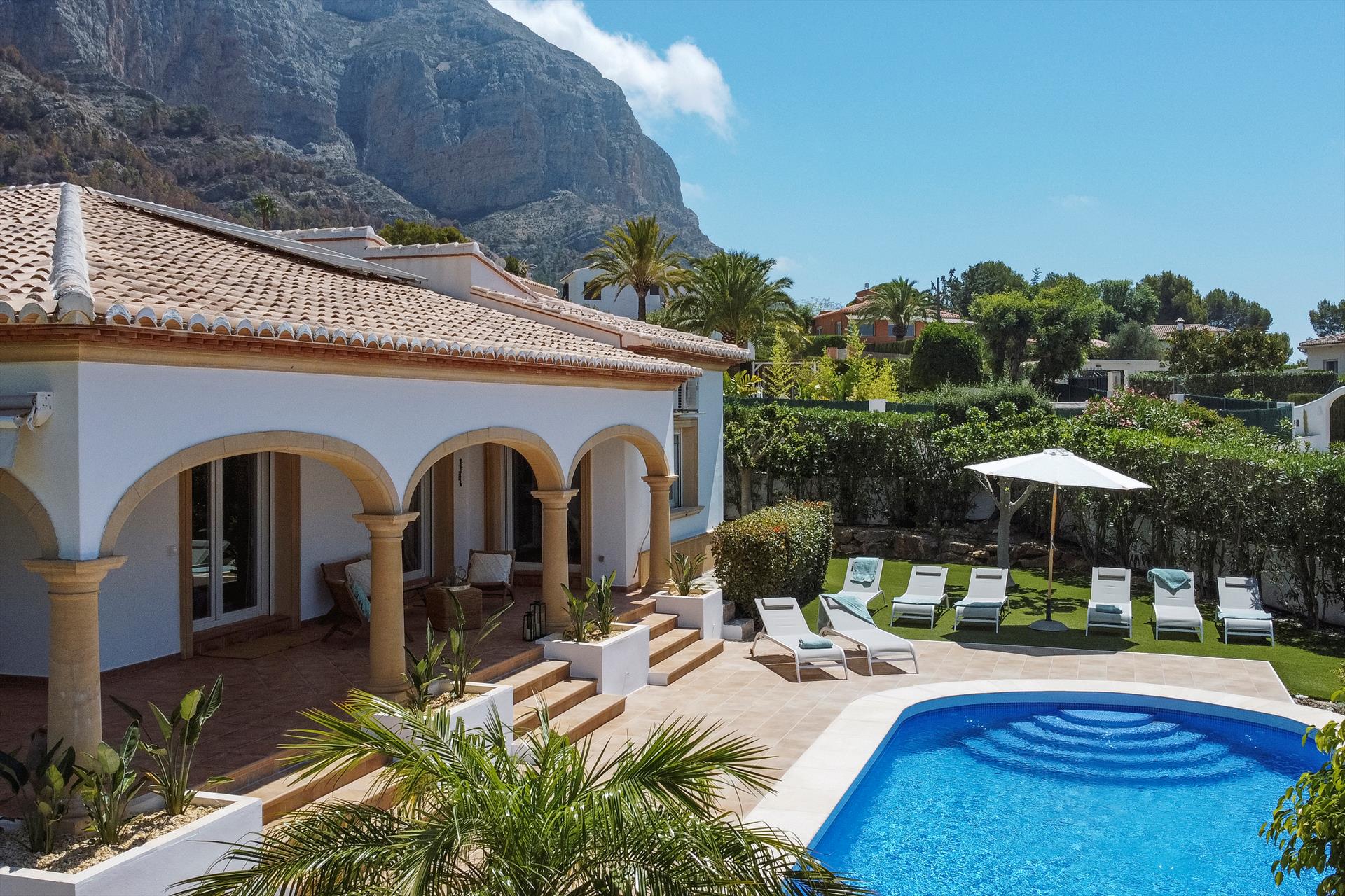 Beautiful and comfortable villa in Javea, Costa Blanca, Spain with private pool for 8 persons. The house is situated in a hilly and residential area.