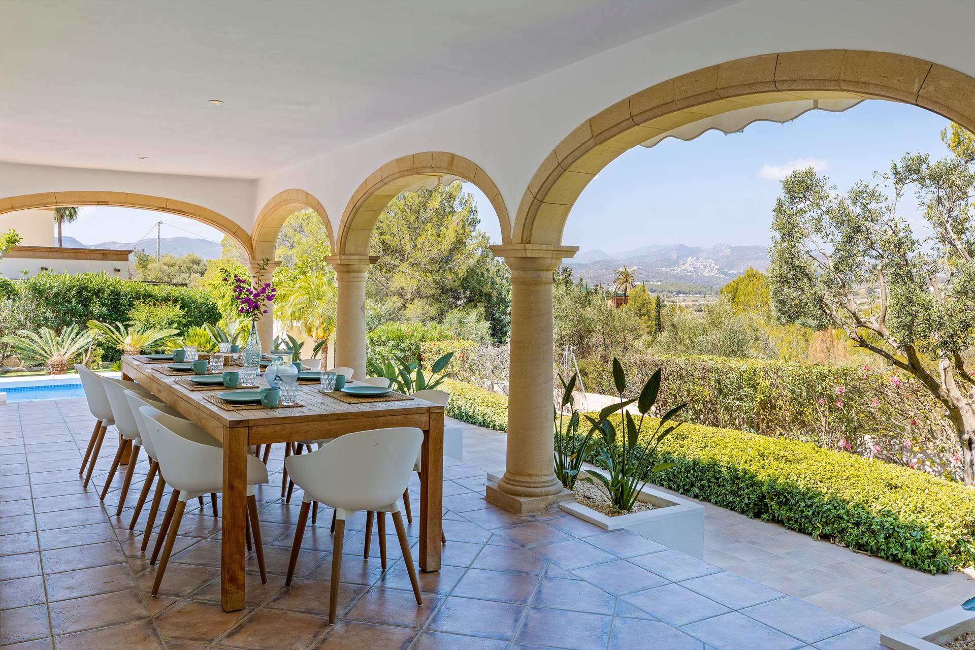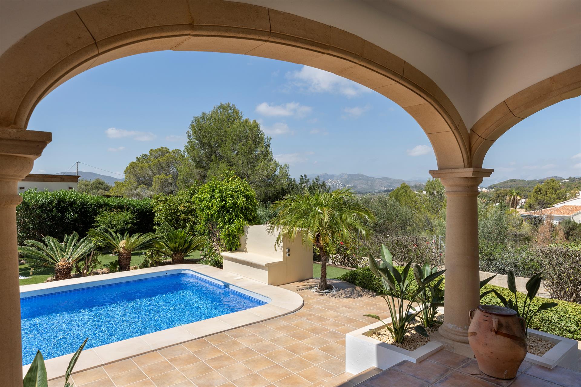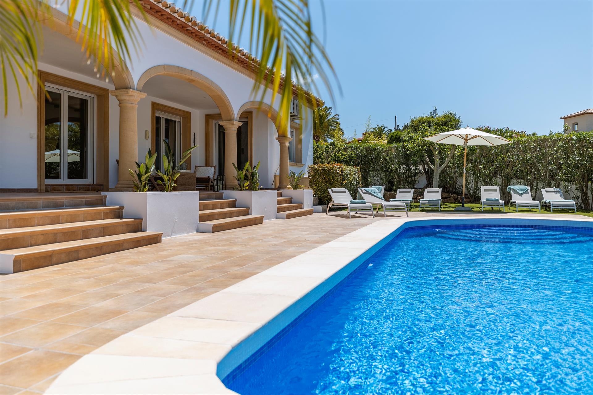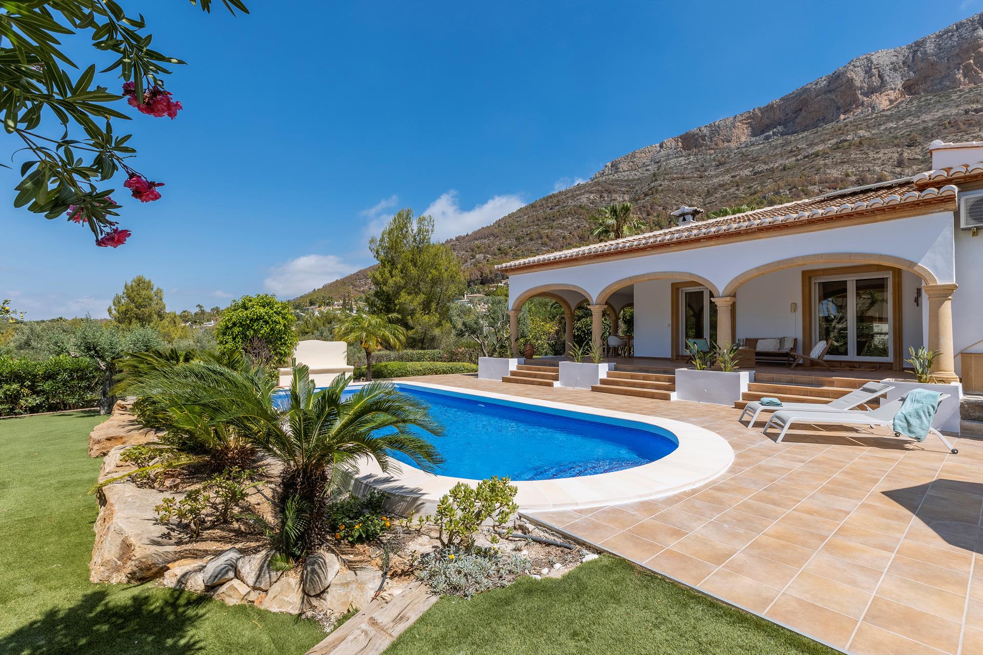 Beautiful and comfortable villa in Javea, Costa Blanca, Spain with private pool for 8 persons. The house is situated in a hilly and residential area.